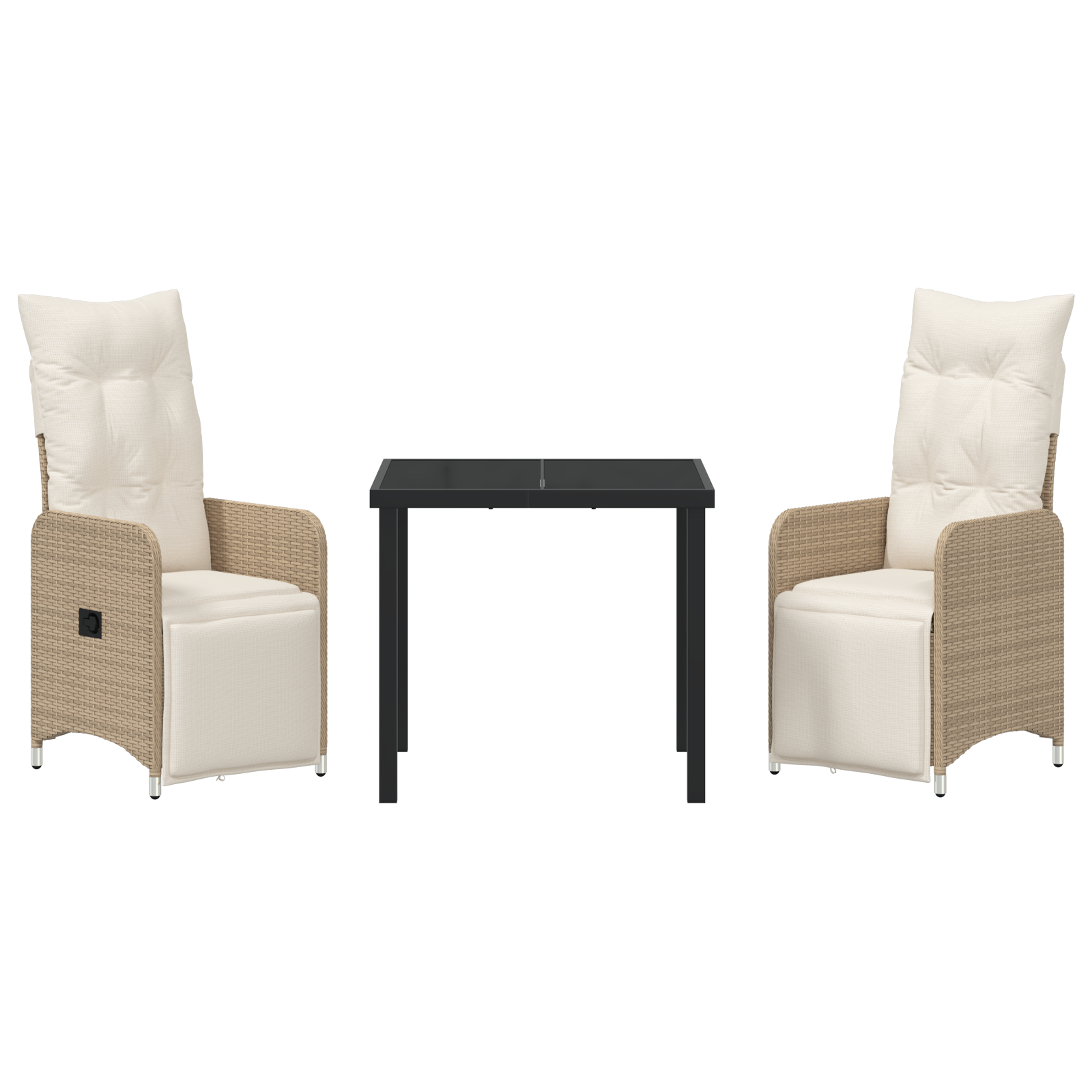 Acest set de scaune de grădină rabatabile face relaxarea în aer liber super simplă, cu poliratanul bej elegant și pernele comfy chemându-te să te așezi. Fie că te bucuri de soare sau socializezi cu prietenii, designul modern îmbină stilul cu funcționalitatea, făcându-l ideal pentru terase, grădini sau balcoane.