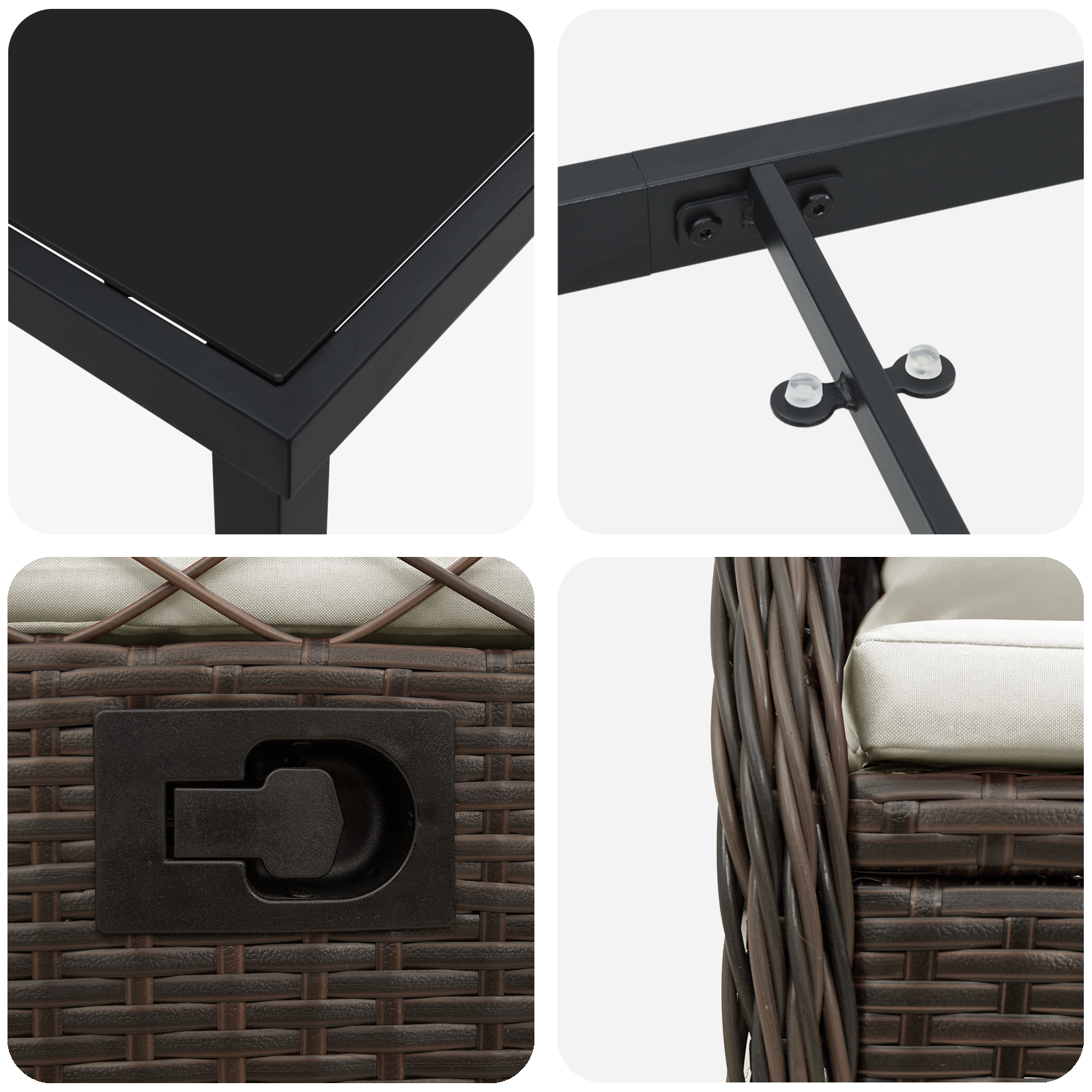 - Ratanul PE de calitate superioară e rezistent la intemperii și se întreține ușor, păstrându-și aspectul frumos pe tot parcursul anului, imitând materiale naturale.