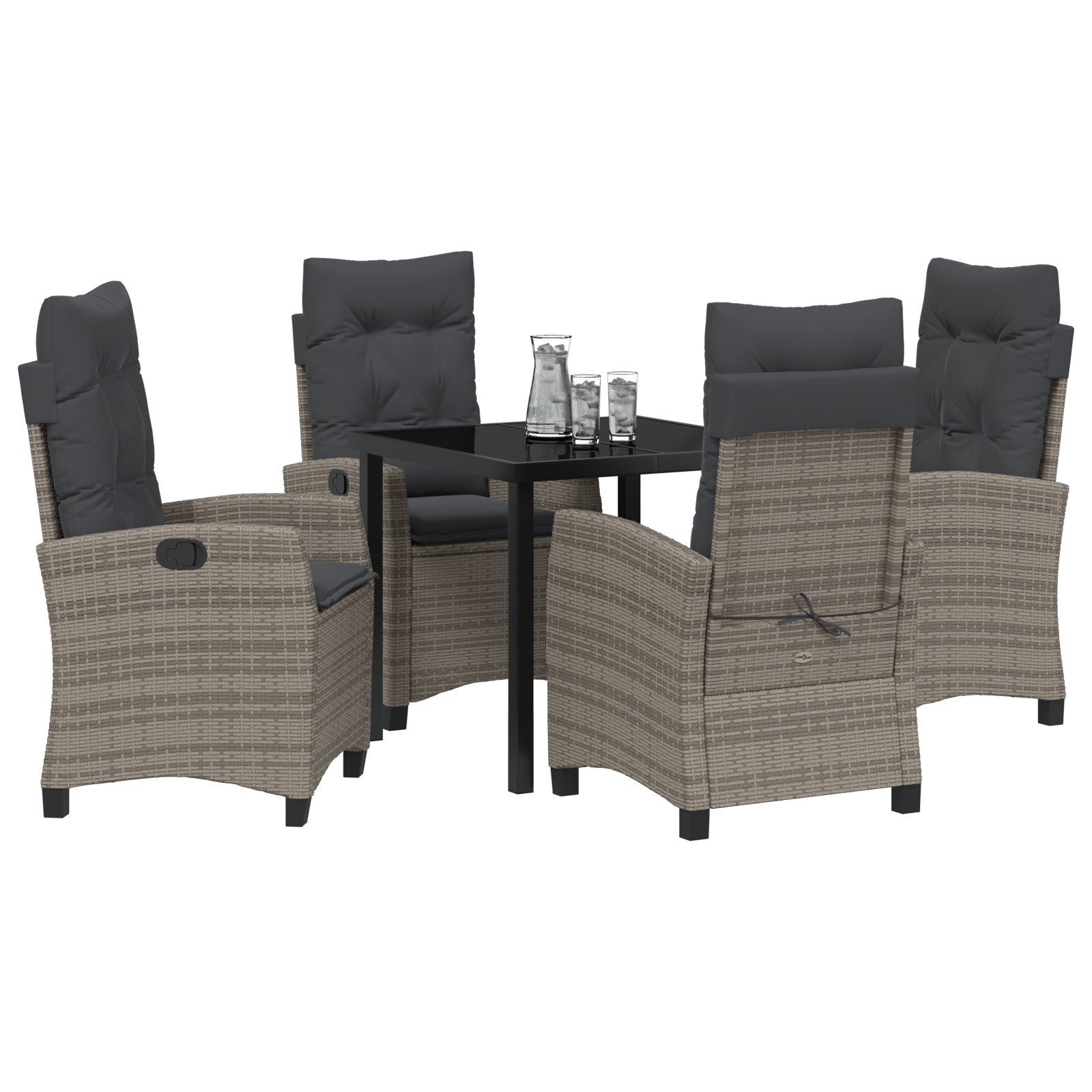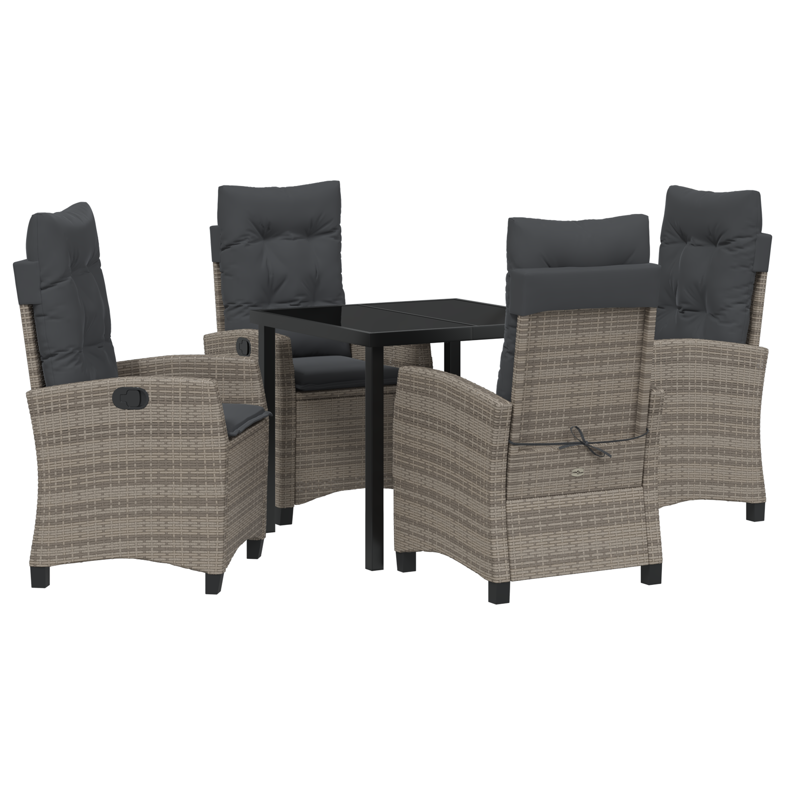 Set de Dining de Grădină 5 Piese cu Pernă Gri Poliratan GartenMobel Dekor