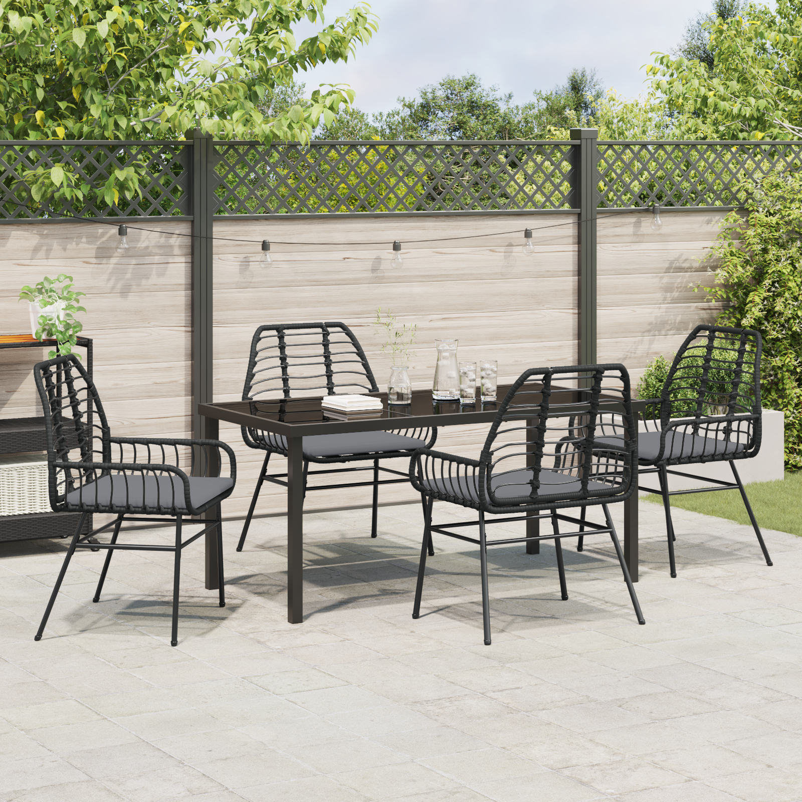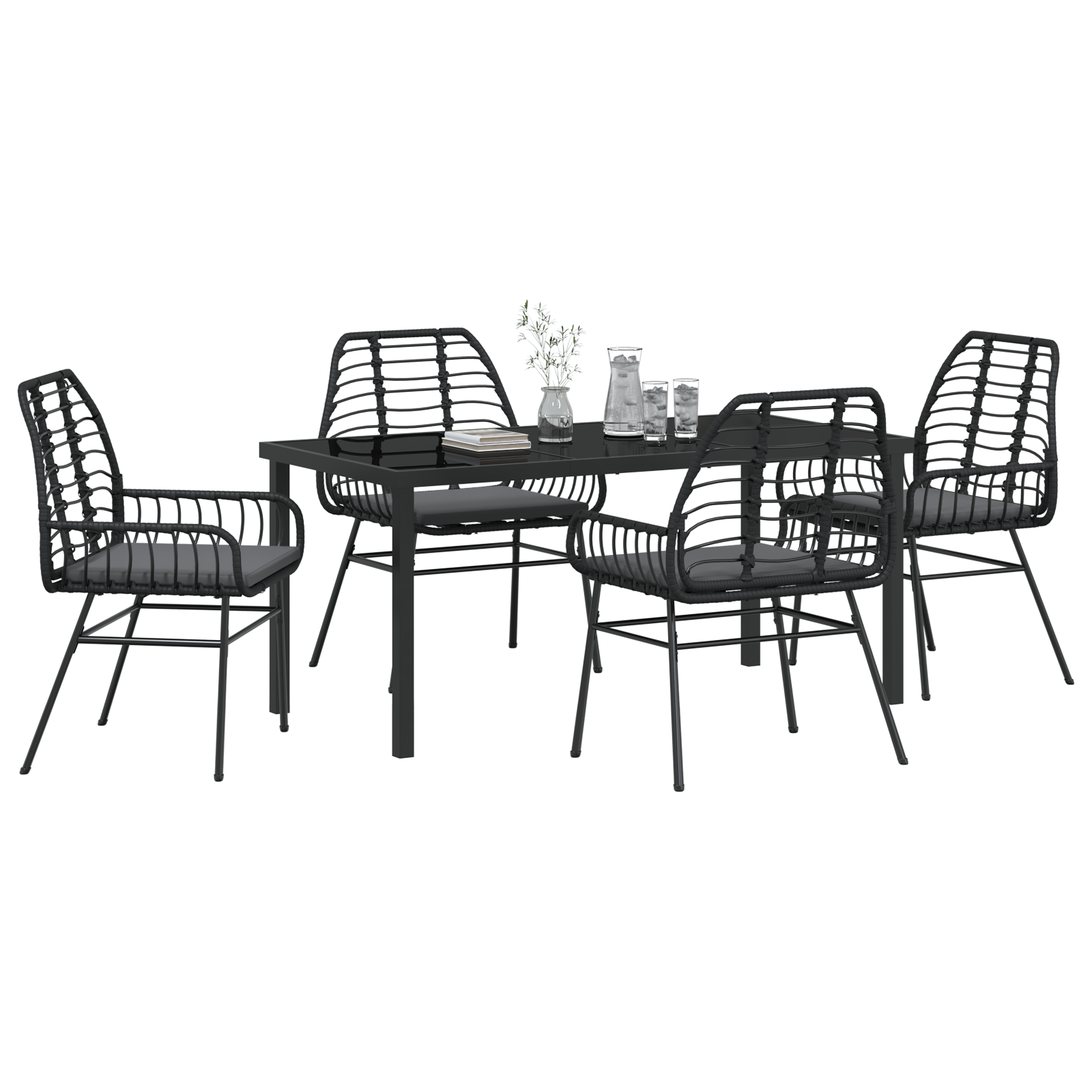 Set de dining de grădină 5 piese cu perne Negre din poliratan GartenMobel Dekor