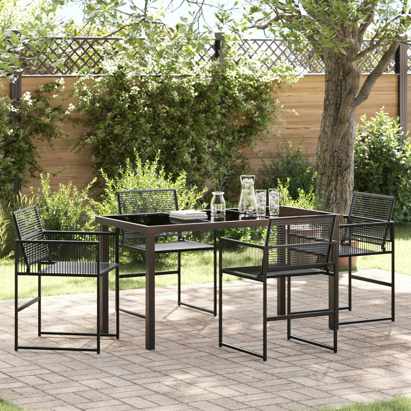 Descriere Set dining grădină 5 piese Negru