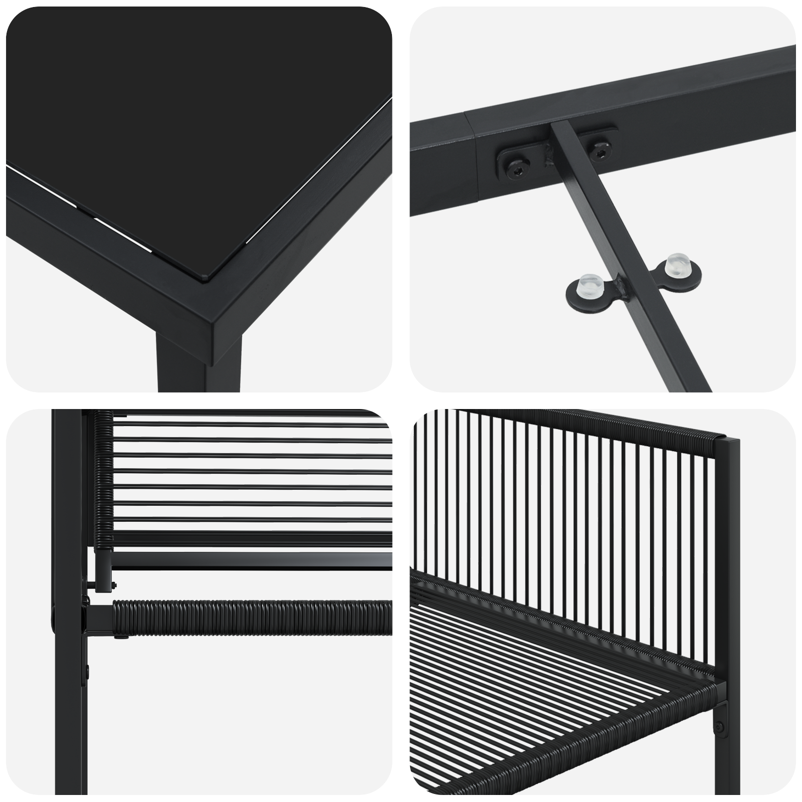 Fiecare set include 4 scaune din PE rattan rezistent și un cadru solid din oțel vopsit electrostatic. Designul compact asigură o depozitare ușoară, fără a pierde confort.- Number Of Items: 2