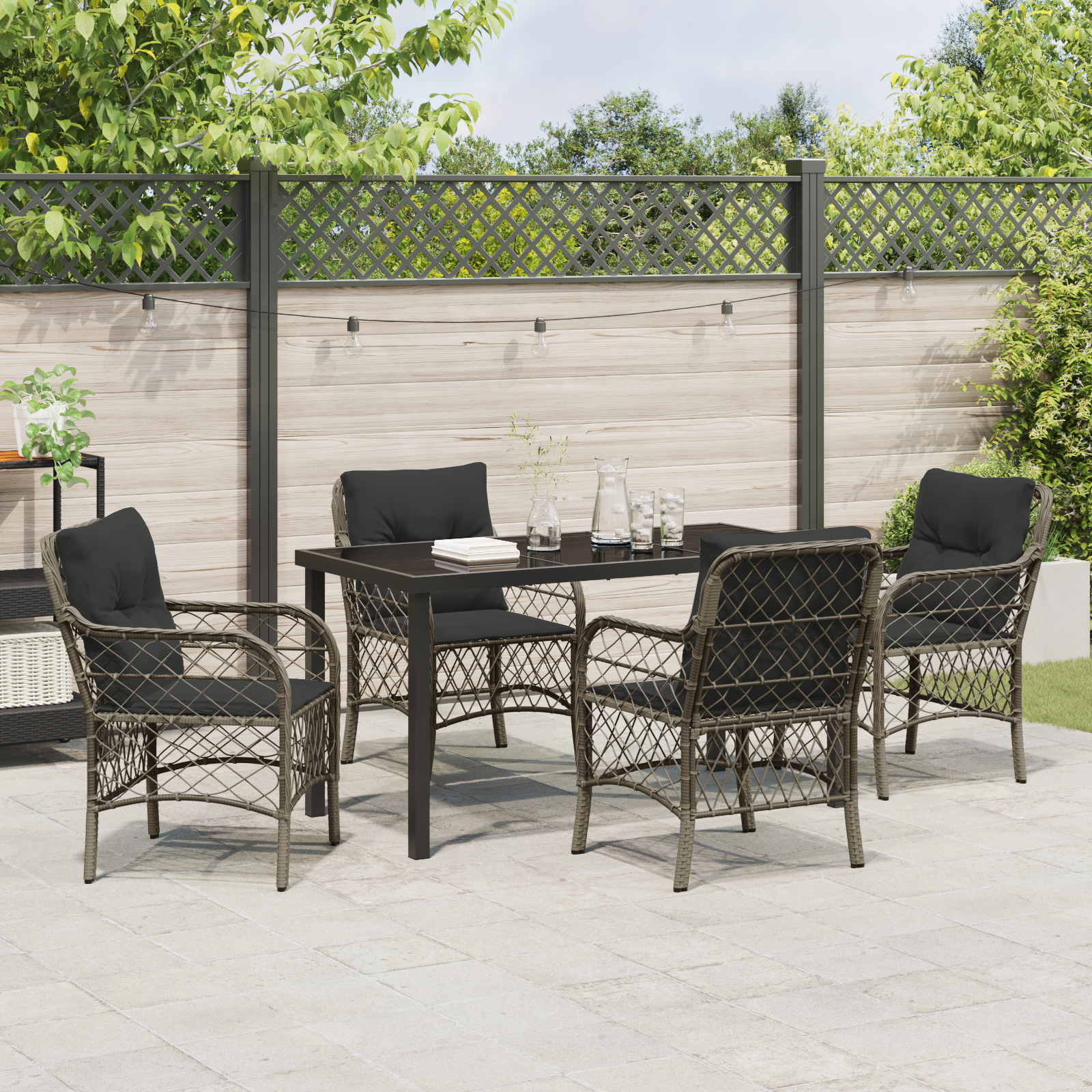 Set de dining de grădină cu 5 piese și perne gri din poliratan GartenMobel Dekor