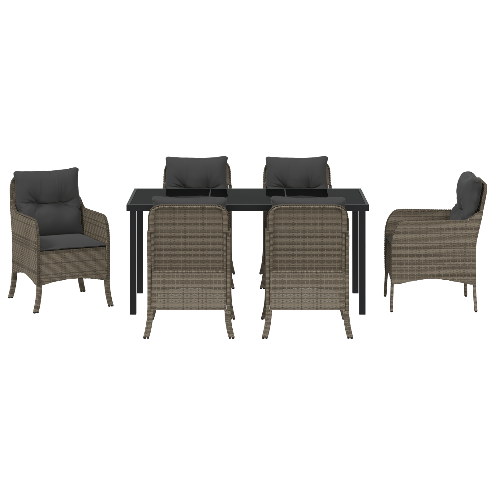 Set de dining de grădină cu 7 piese și perne gri din poli-ratan GartenMobel Dekor