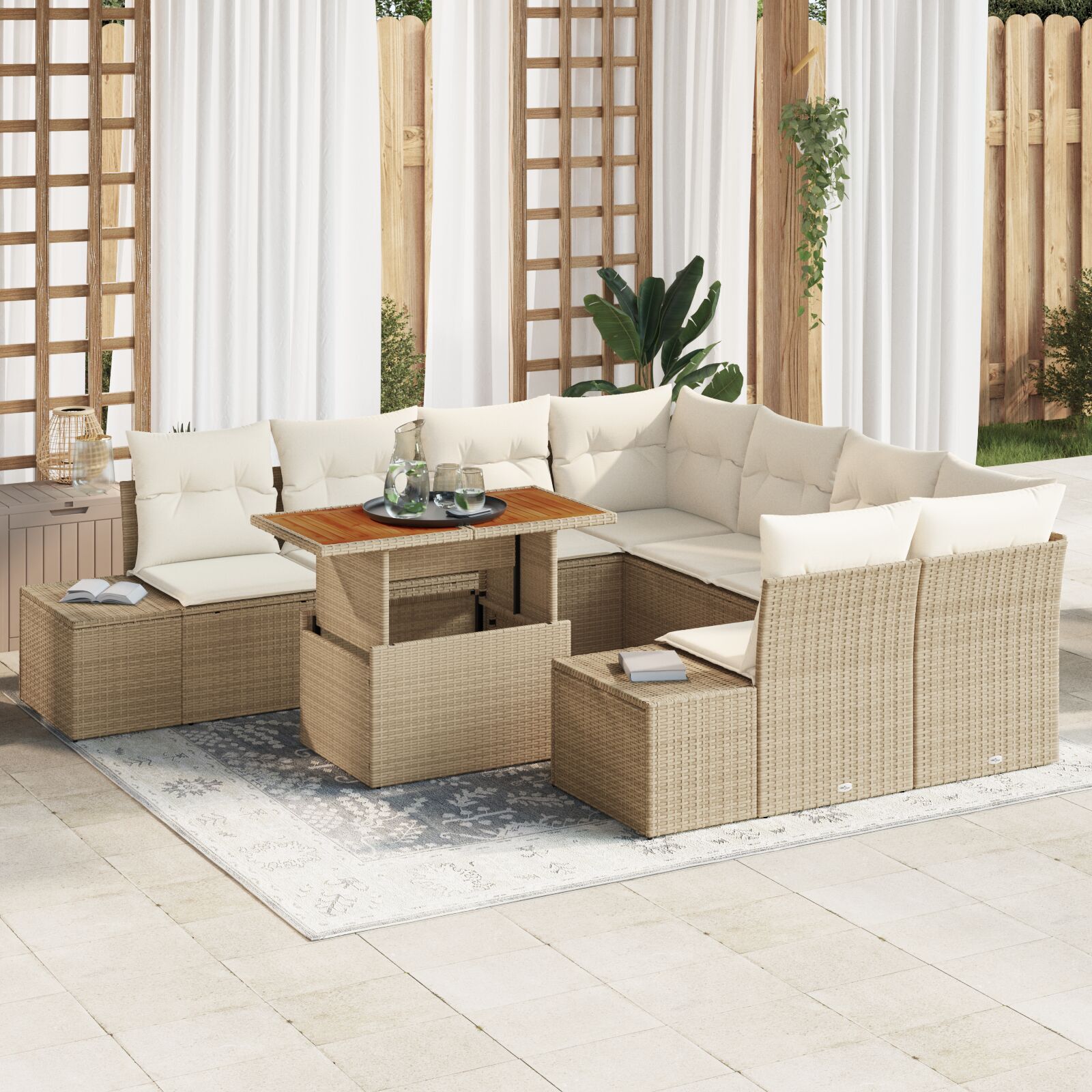 Set de dining de grădină cu 9 piese și perne bej din poli-ratan și acacia GartenMobel Dekor