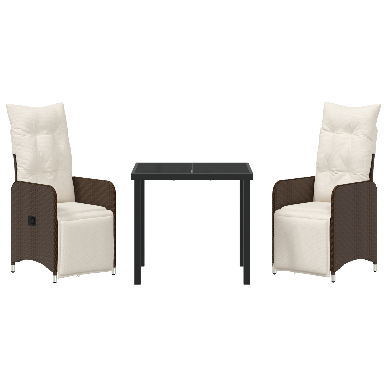 Îmbunătățește-ți relaxarea în aer liber cu setul ăsta de scaune de grădină reclinabile din poliratan maro. Sunt perfecte pentru zile însorite sau seri între prieteni, combinând stilul bun cu funcționalitatea practică pentru patio-uri, balcoane sau grădini.