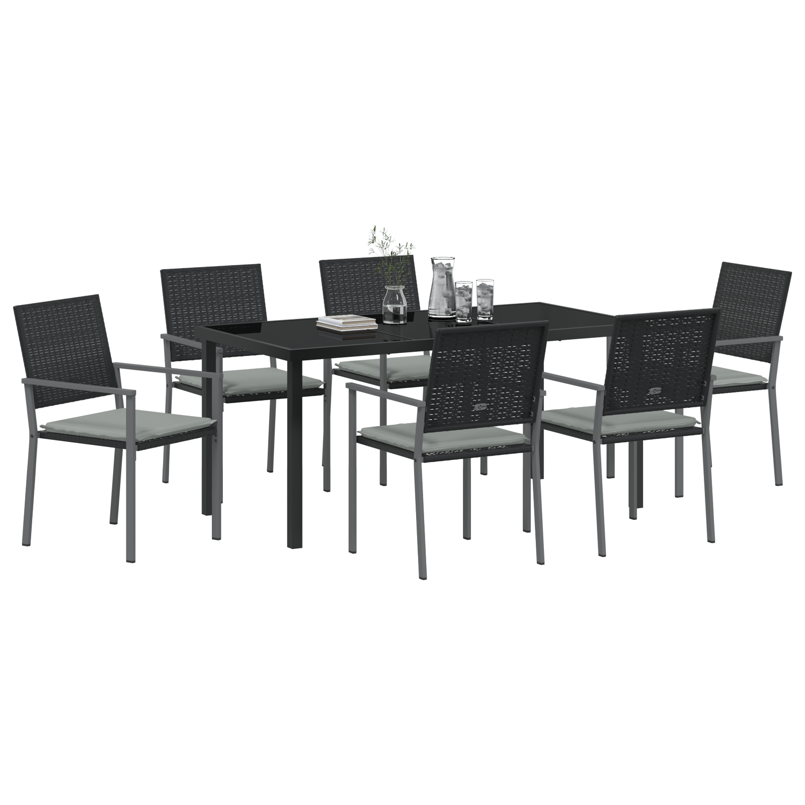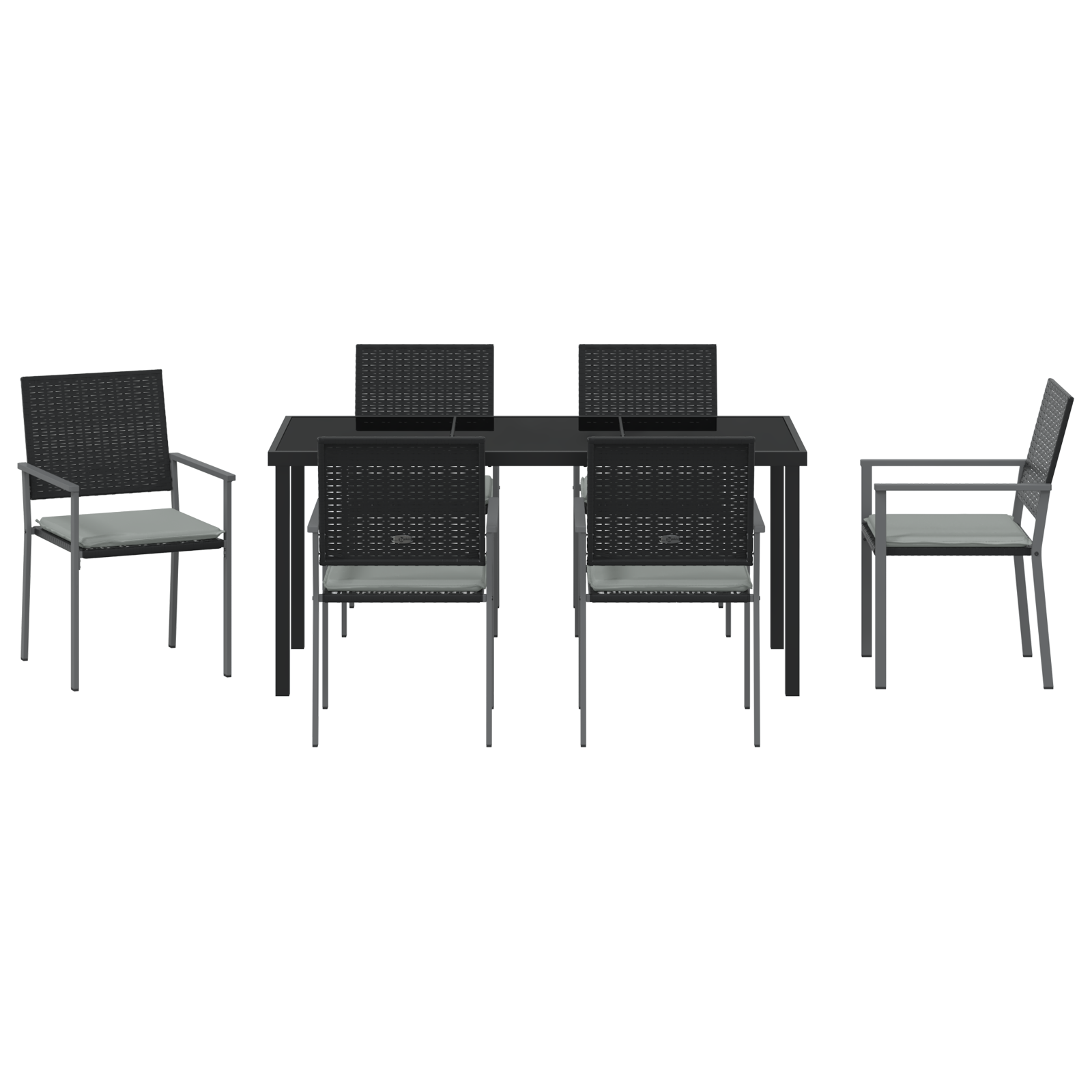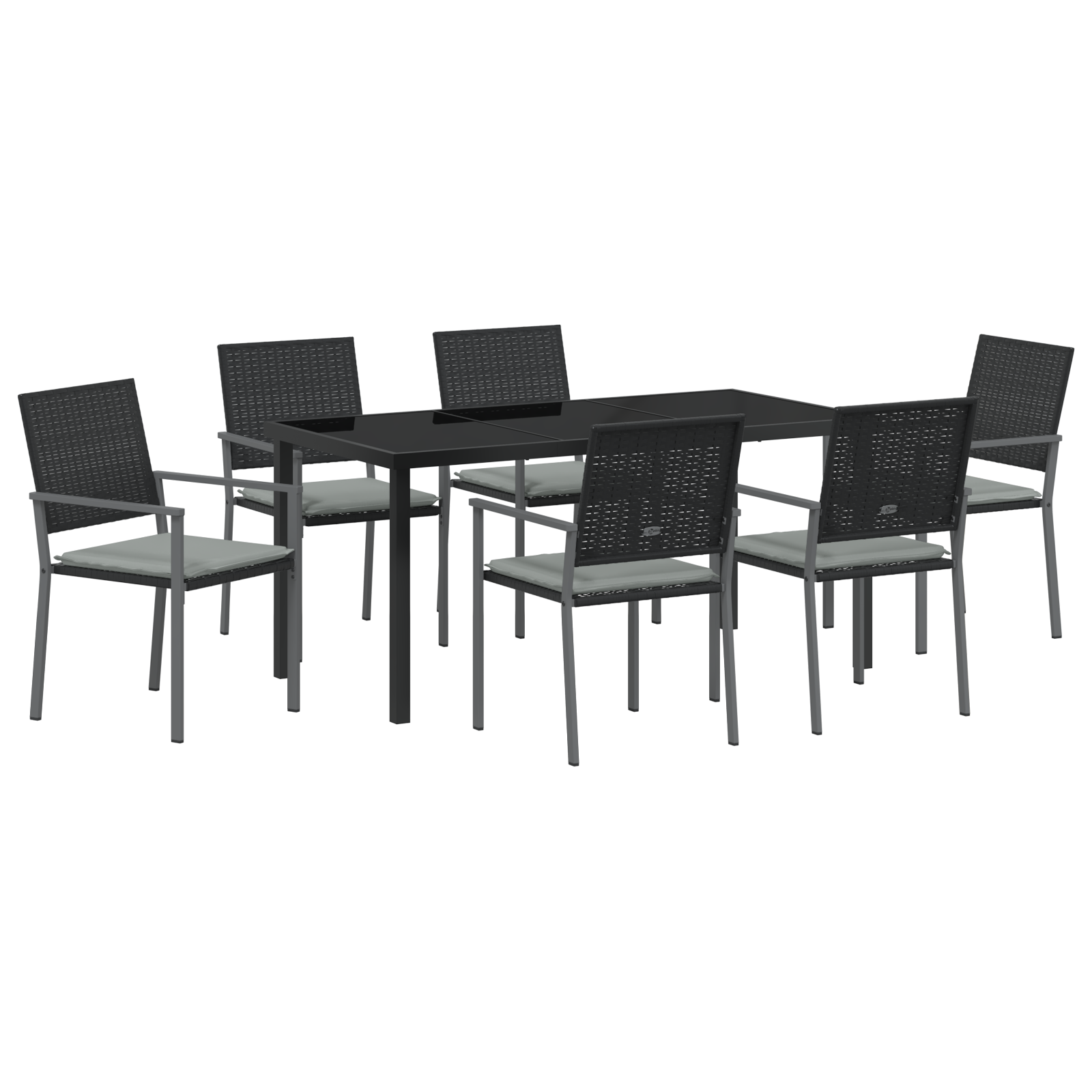 Set de dining de grădină din 7 piese cu perne din poliratan negru GartenMobel Dekor