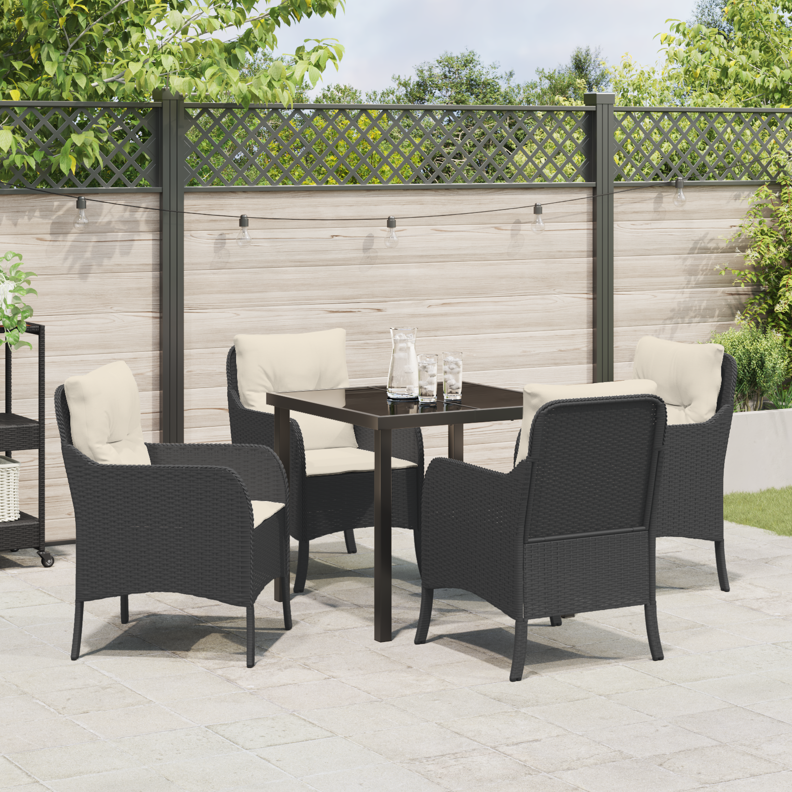 Set de Dining Grădină cu 5 Piese cu Perne Negru Poliratan GartenMobel Dekor
