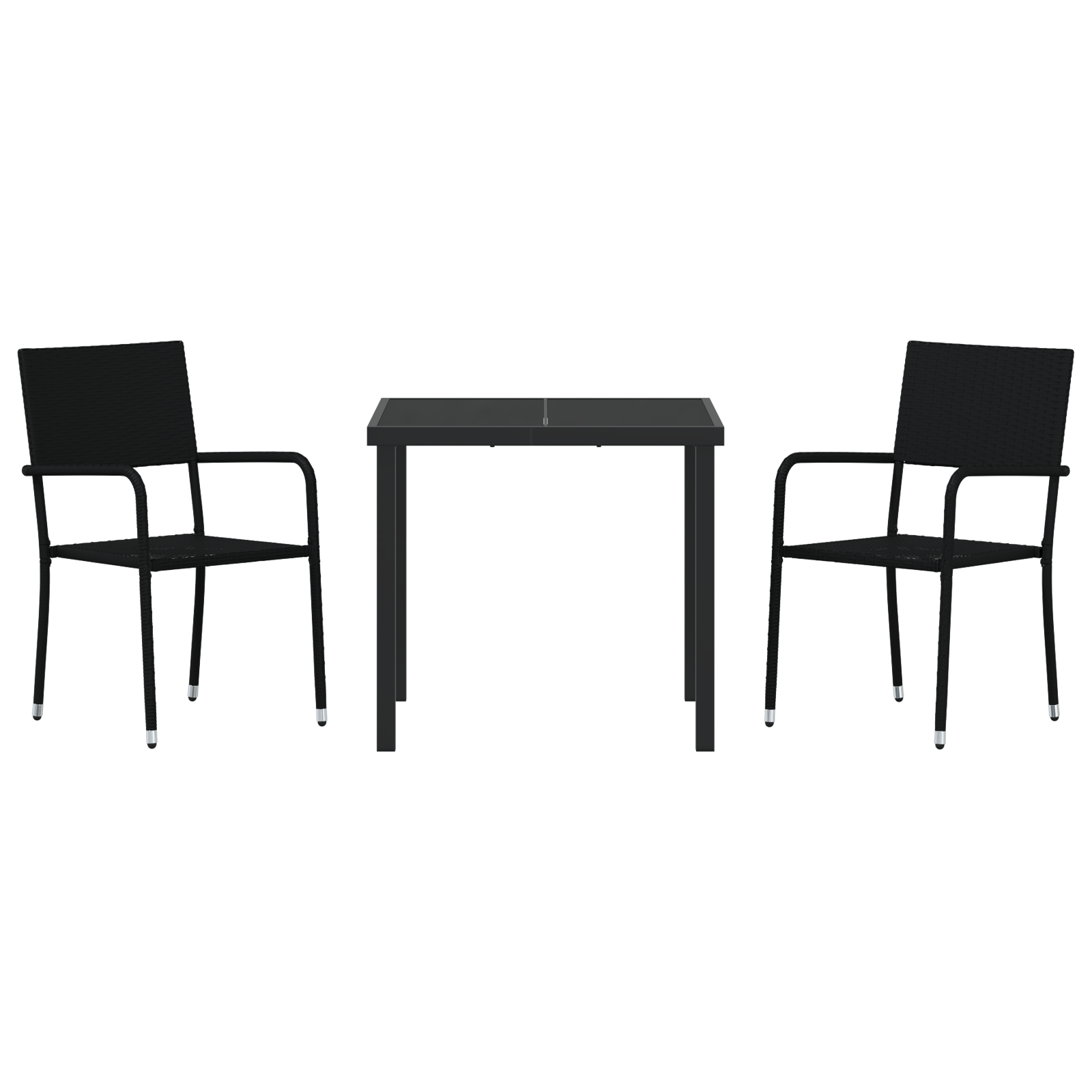 Set de dining în grădină 3 piese din rattan PE negru GartenMobel Dekor