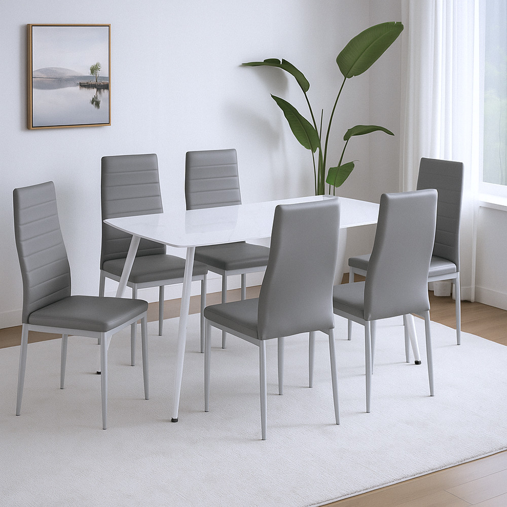 - Set complet 6+1: 1 masă + 6 scaune, potrivit pentru bucătărie sau sufragerie