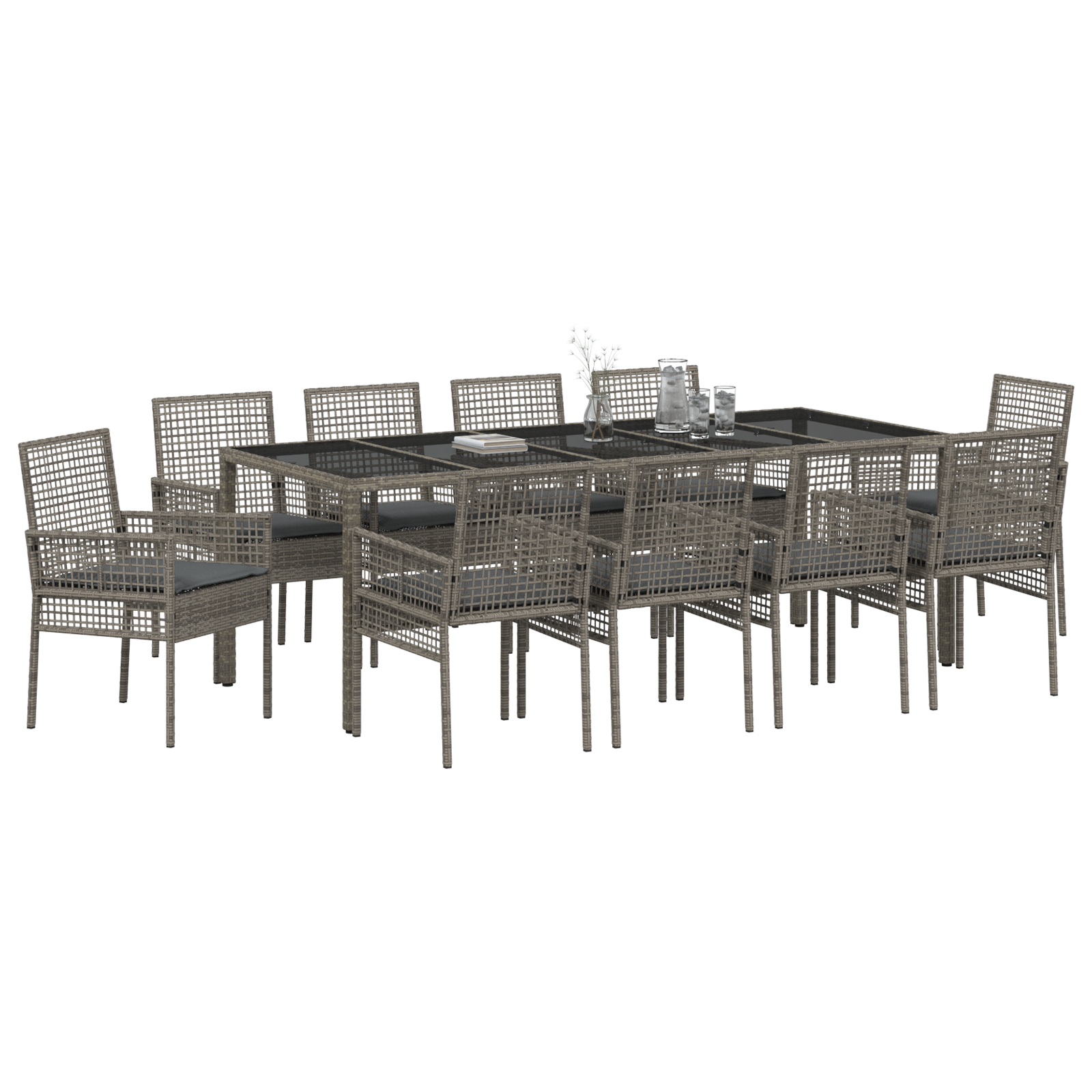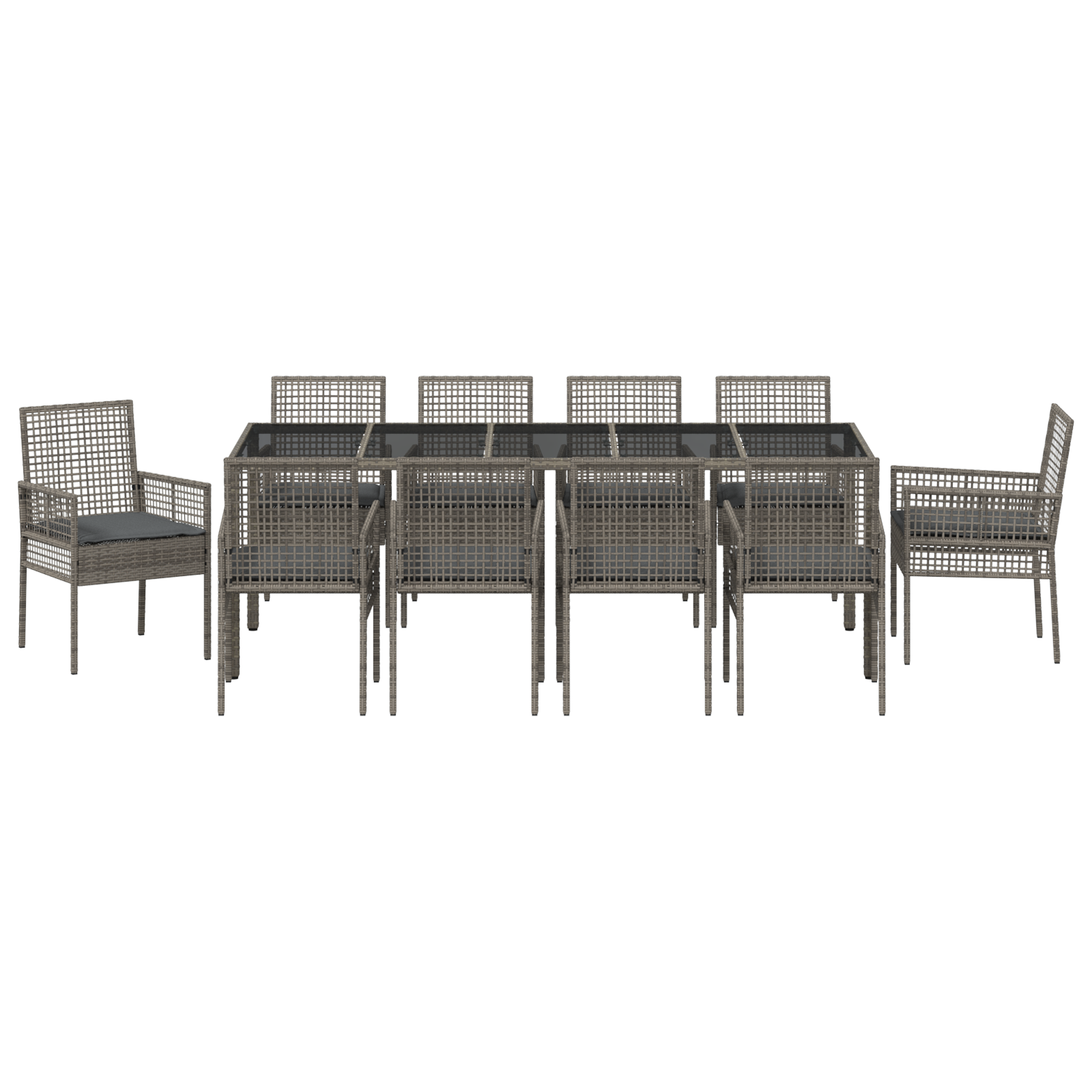 Set de dining pentru grădină , 11 piese cu perne, gri, din ratan poliester GartenMobel Dekor
