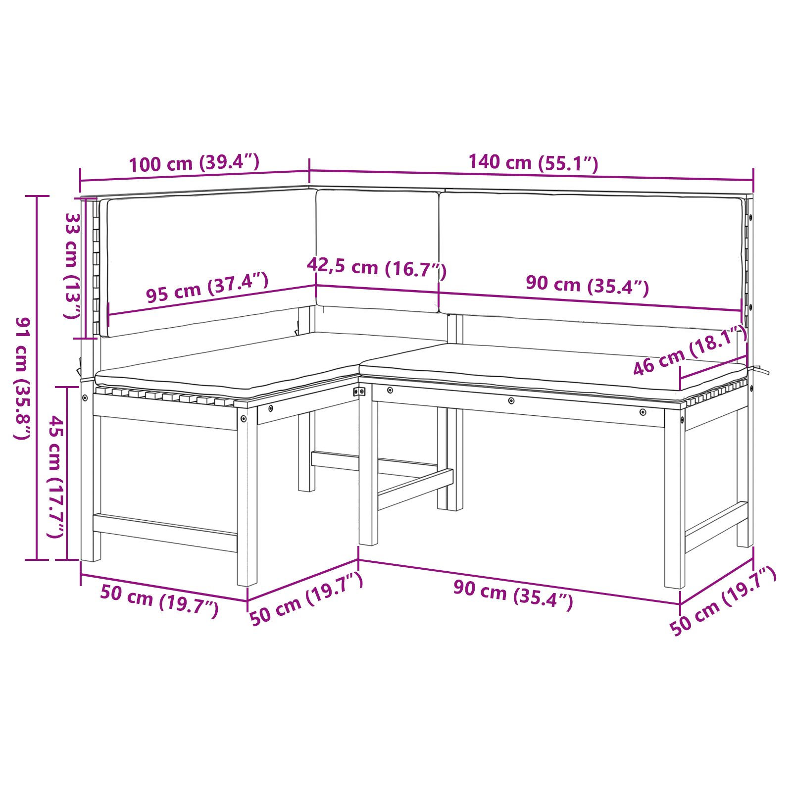 Set de dining pentru grădină , 2 piese, cu perne, din lemn masiv de acacia GartenMobel Dekor