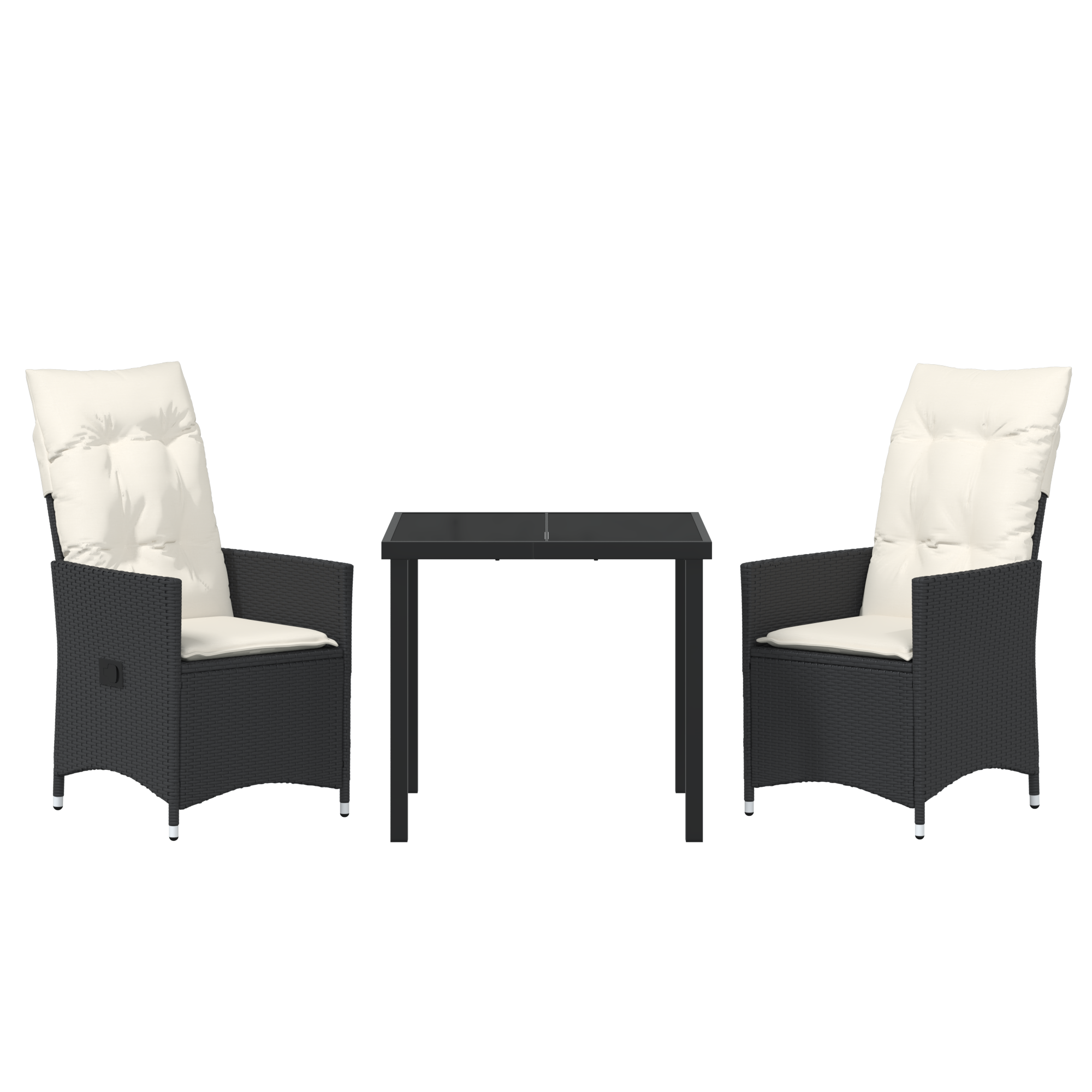 Set de dining pentru grădină , 3 piese cu perne, Negru, Poliratan GartenMobel Dekor