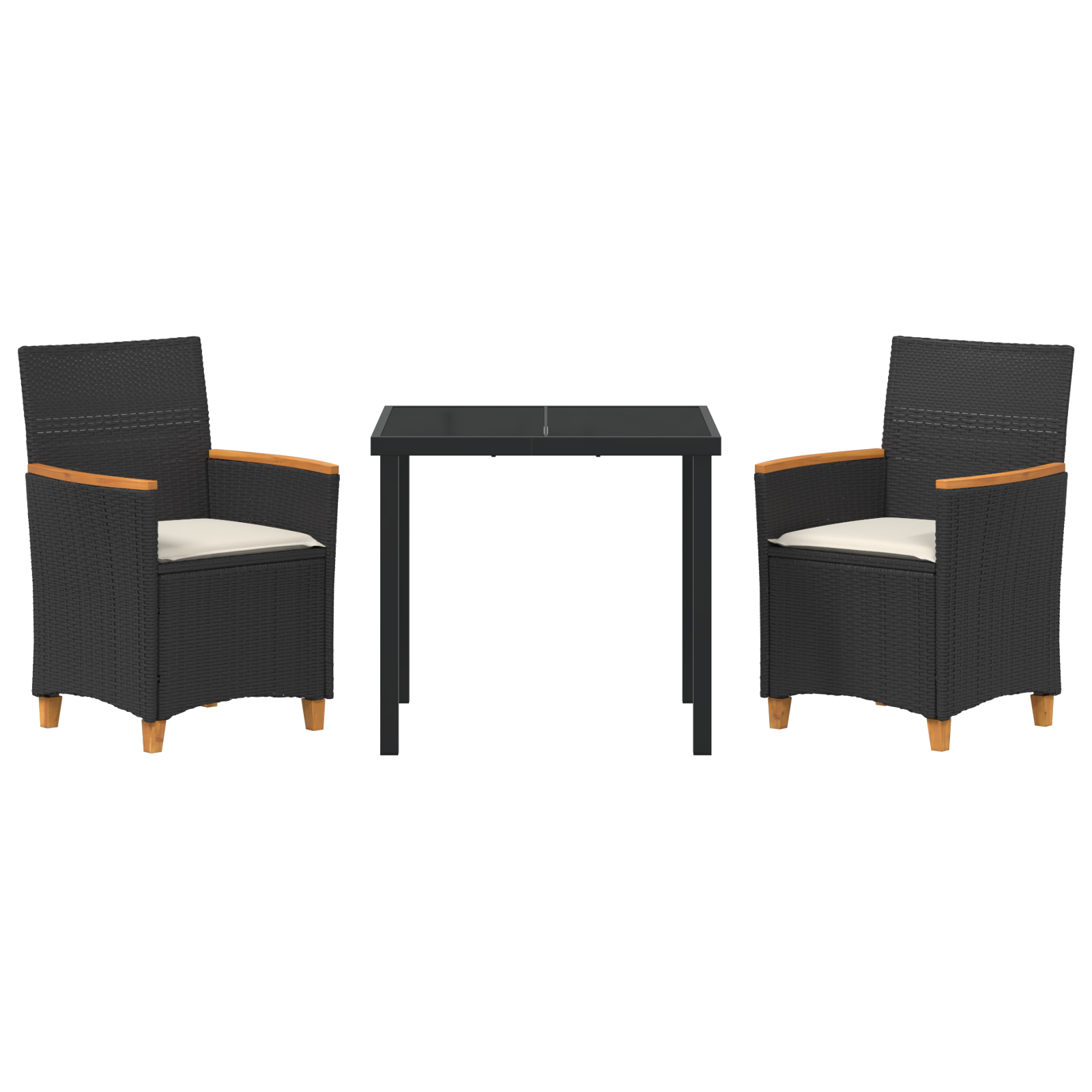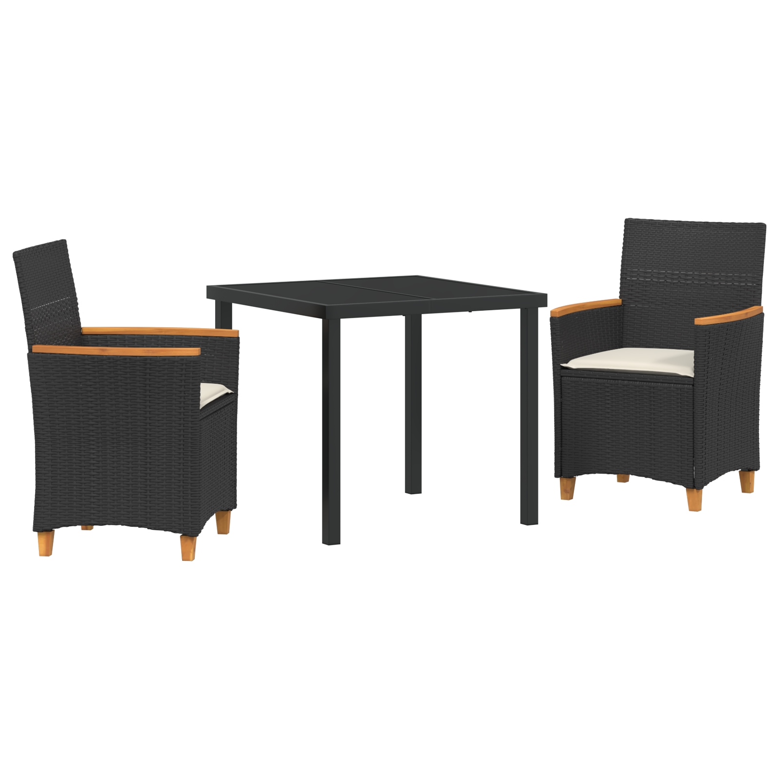 Set de dining pentru grădină 3 piese cu perne Negru Ratan Poli GartenMobel Dekor