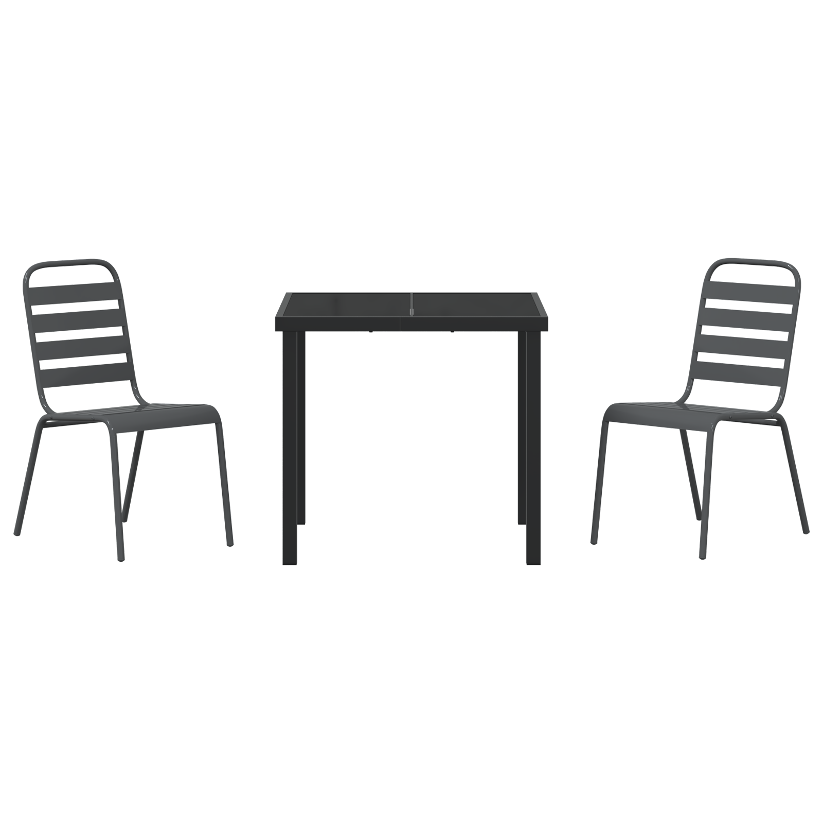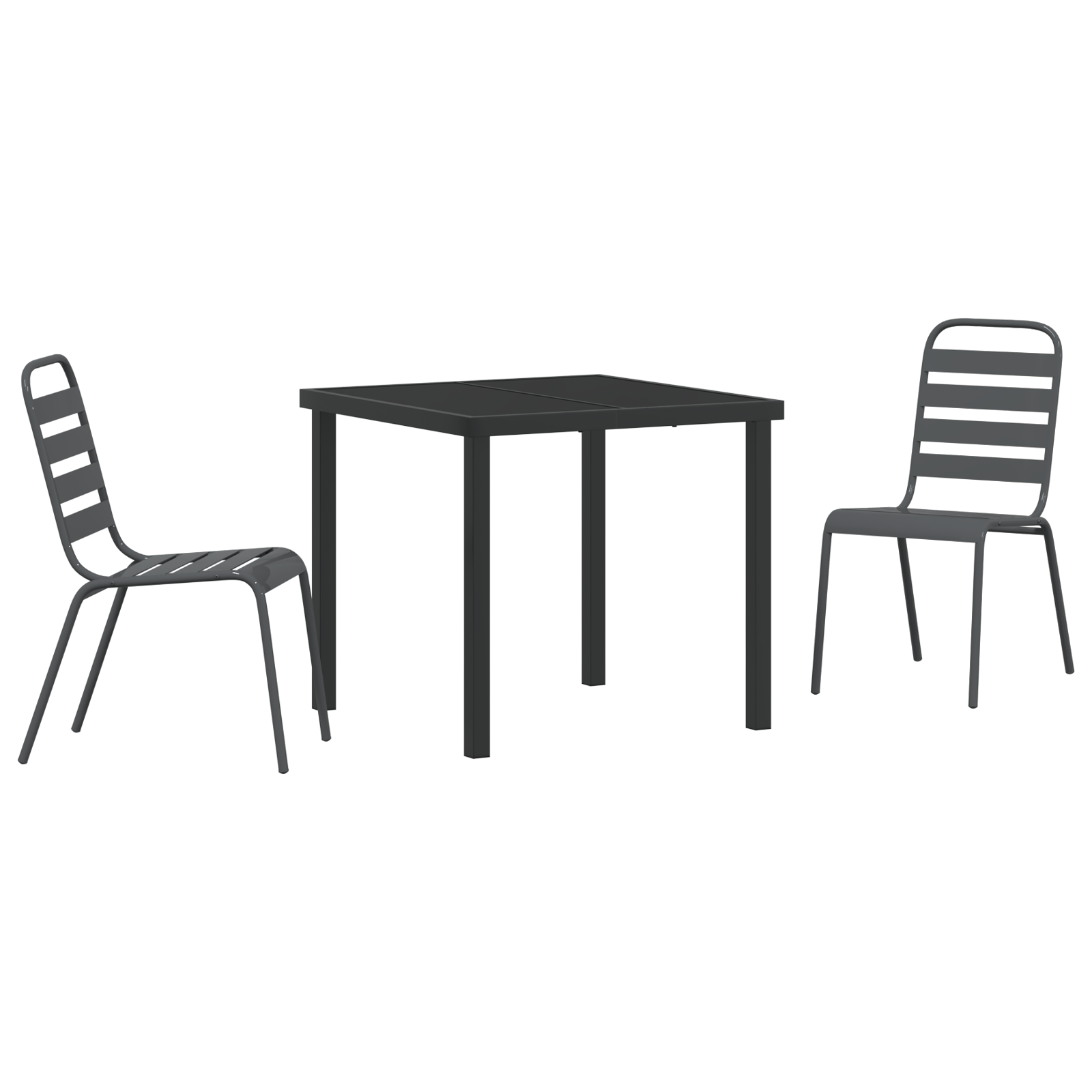 Set de dining pentru grădină 3 piese gri închis din oțel GartenMobel Dekor