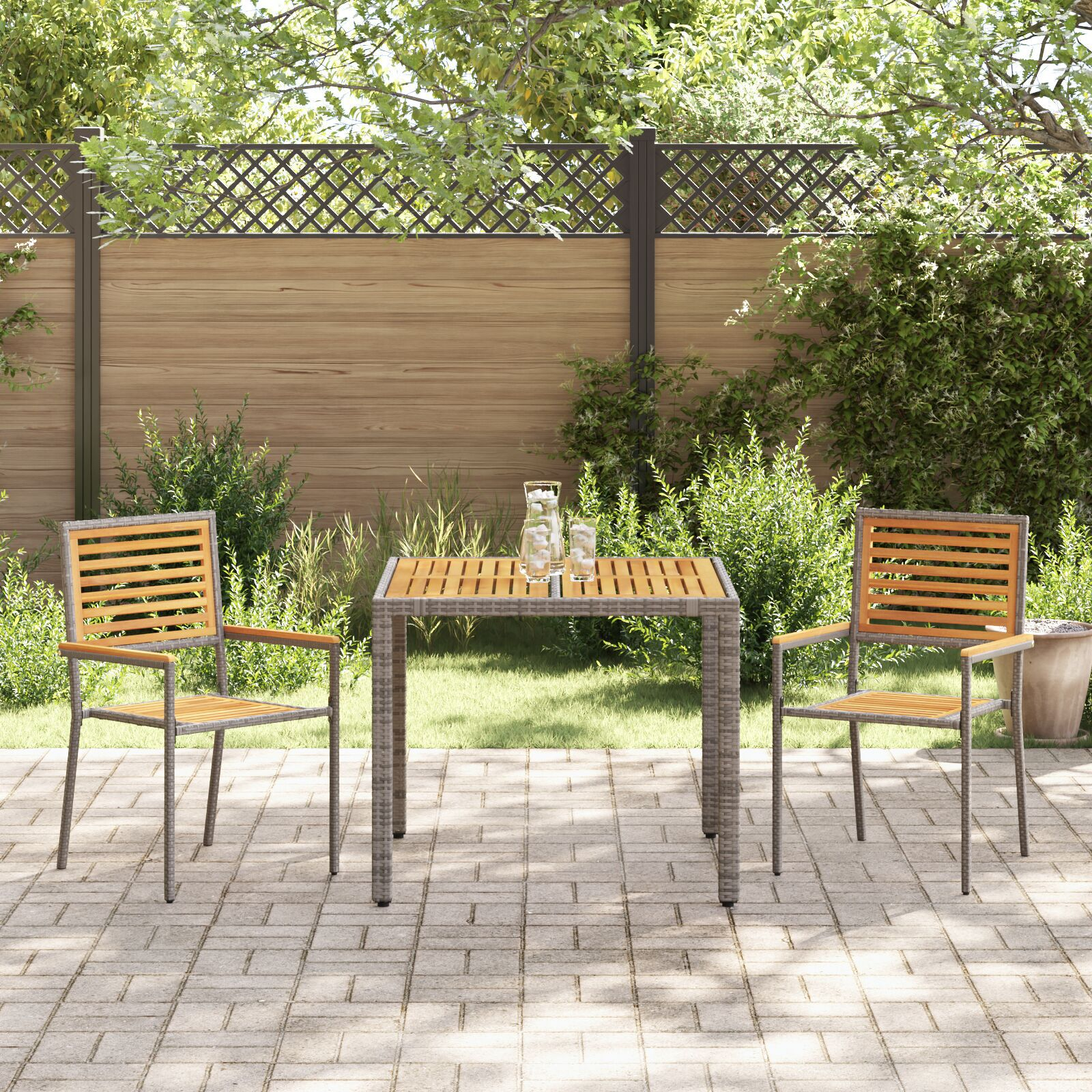 Set de dining pentru grădină 3 piese gri poliratan acacia, Scaune stivuibile pentru grădină cu perne 2 buc. gri poliratan GartenMobel Dekor