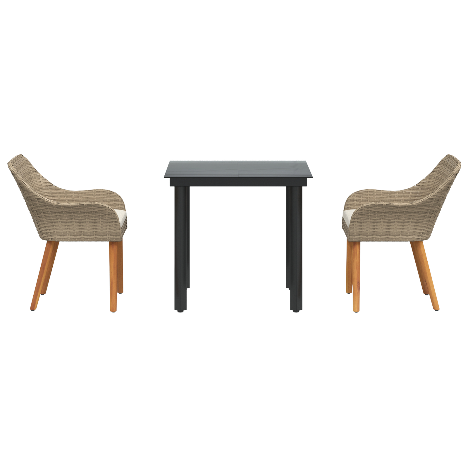 Setul ăsta mișto de dining pentru patio combină un design chic cu utilitate, făcându-l ideal pentru mese cozy afară. Are o masă pătrată și două scaune comfortabile care transformă balconul sau grădina ta într-un loc primitor unde să savurezi mese sau să te bucuri de soare.