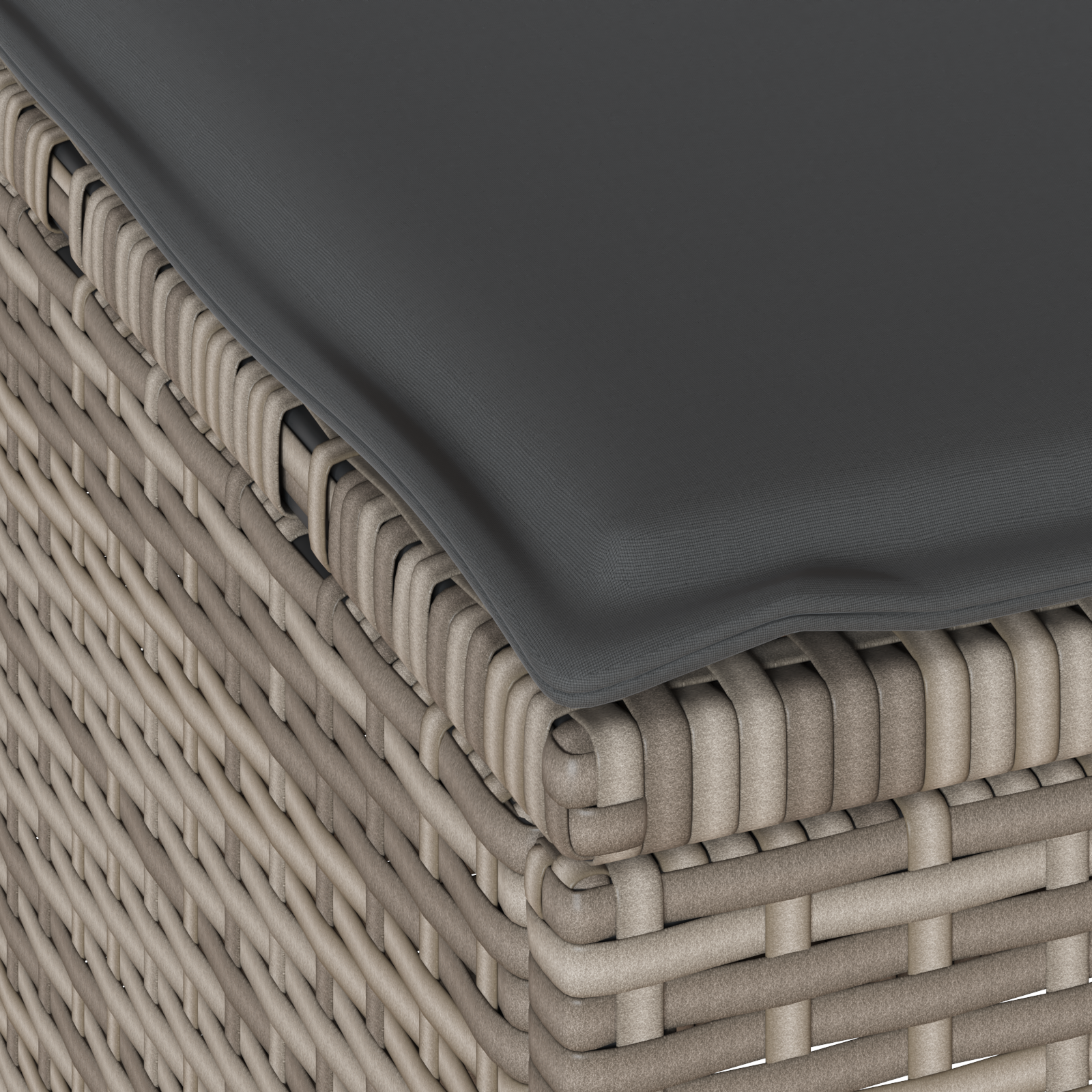 Setul ăsta de dining modern e tot despre confort și stil, ideal pentru balconul tău sau zona de dining de afară. Cu ratan gri împletit și taburete corespunzătoare, dă o atmosferă caldă, perfectă pentru prieteni și familie.