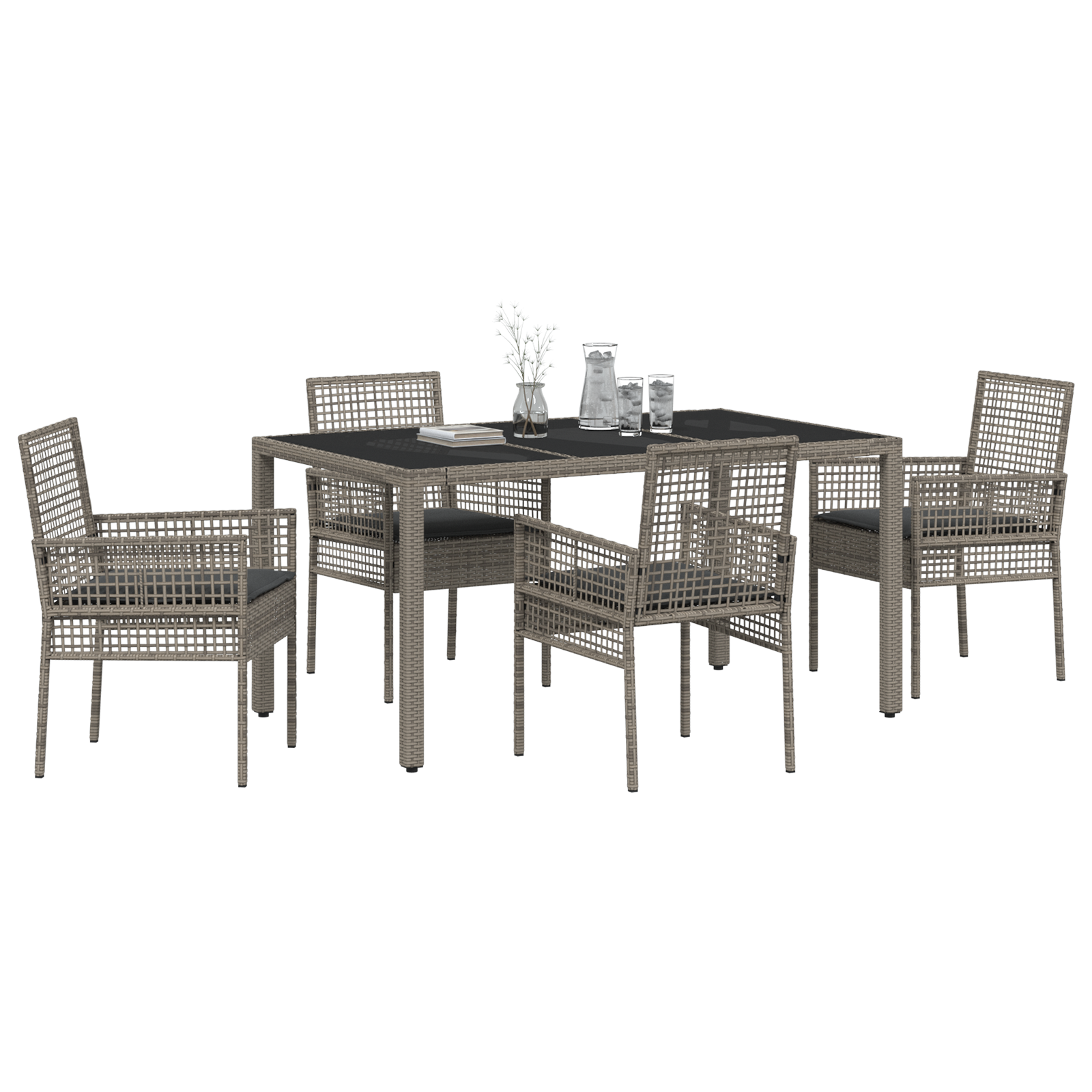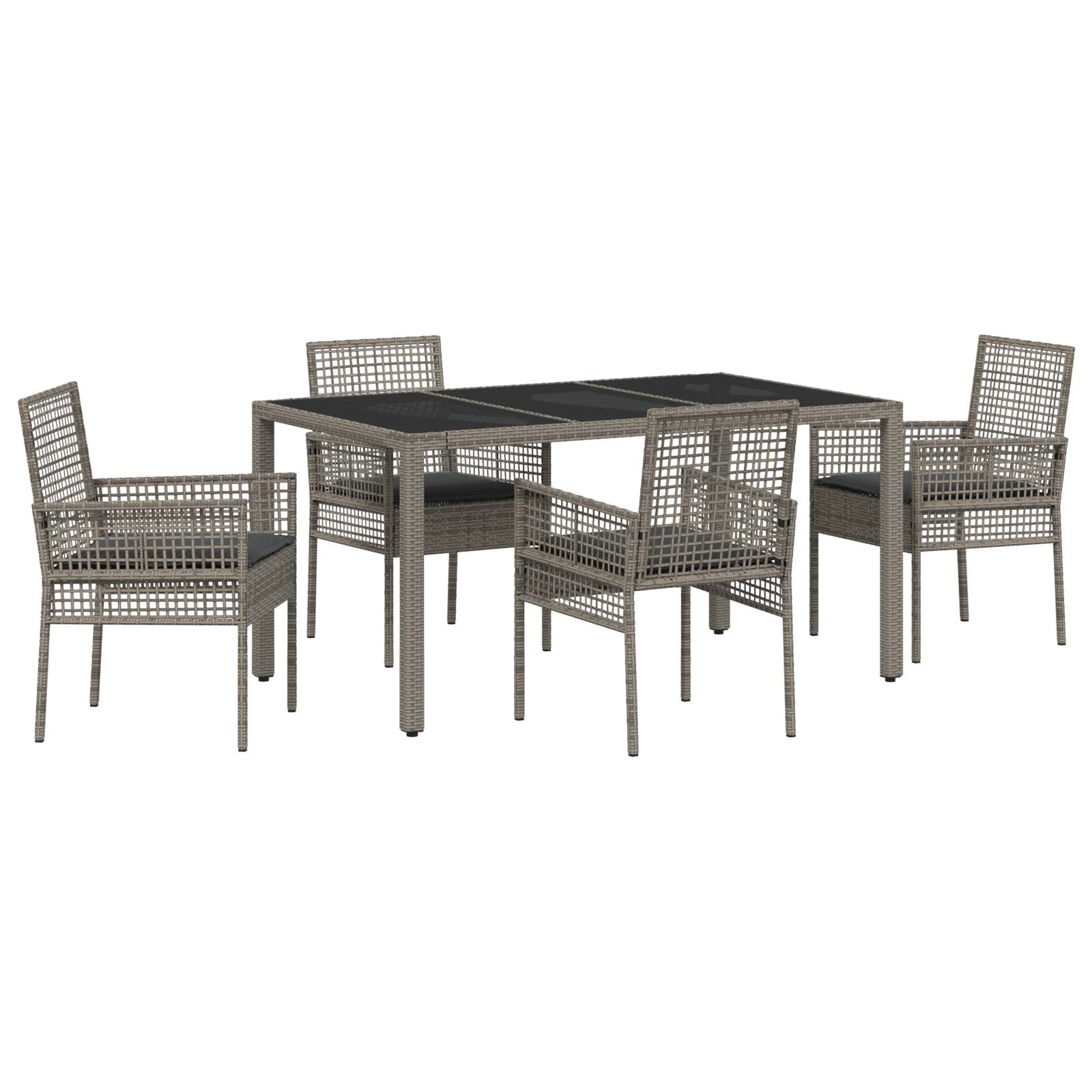 Set de dining pentru grădină , 5 piese, cu perne, gri, din poliratan GartenMobel Dekor