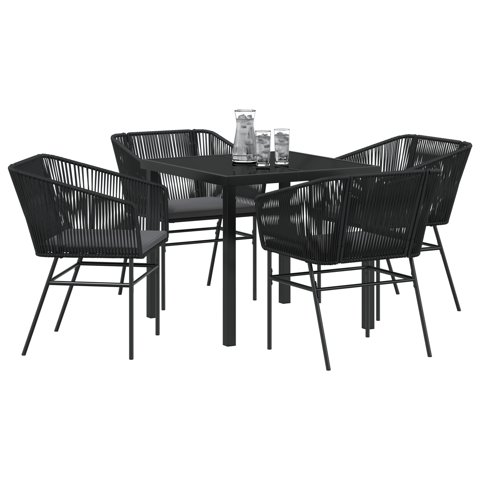 Set de dining pentru grădină , 5 piese, cu perne, ratan poli, negru GartenMobel Dekor