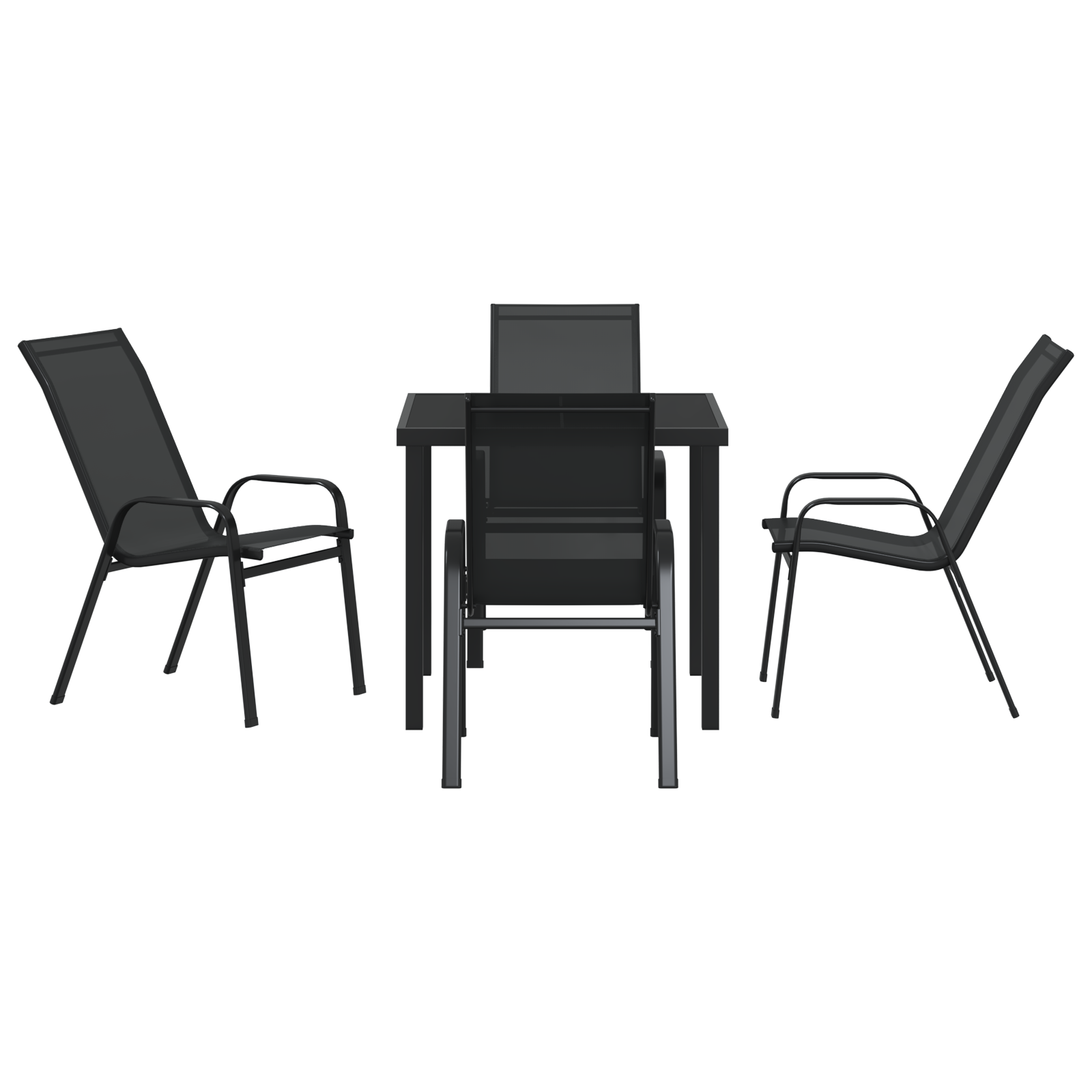 Set de dining pentru grădină 5 piese Negru Textil și Oțel, Masă de grădină Neagră 80x80x73 cm Sticlă Temperată GartenMobel Dekor