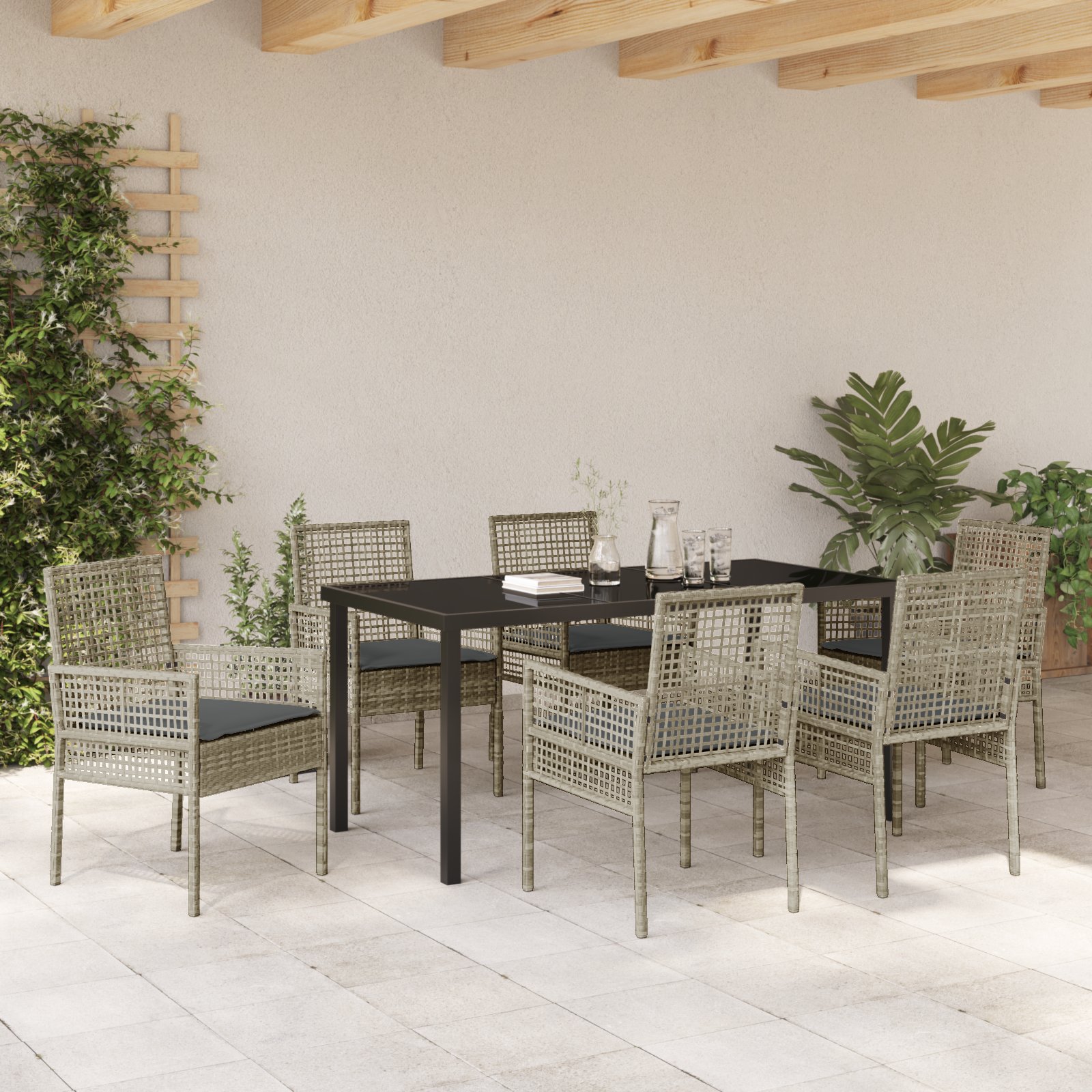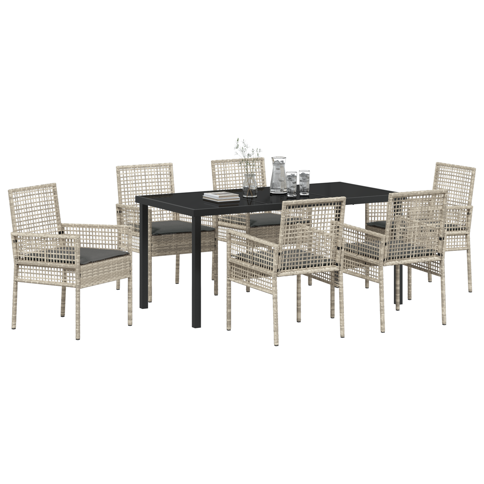 Set de Dining pentru Grădină 7 piese cu Perne Gri deschis Poliratan GartenMobel Dekor