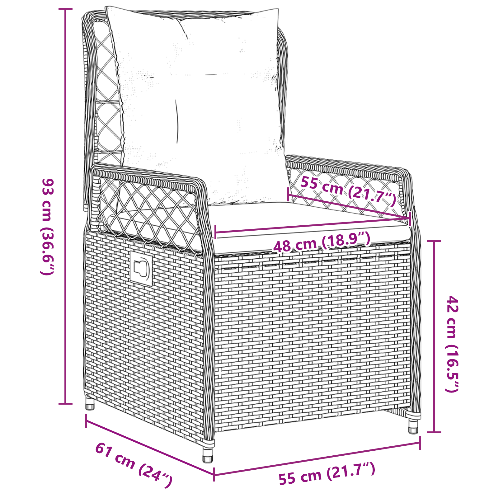 Acest set de scaune reclinabile pentru patio combină stilul cu confortul, fiind o alegere excelentă pentru grădina sau terasa ta. Ideal pentru după-amiezi leneșe sau întâlniri distractive, aceste scaune îți permit să te bucuri de perne confortabile și reglabile, potrivindu-se perfect în orice spațiu exterior.