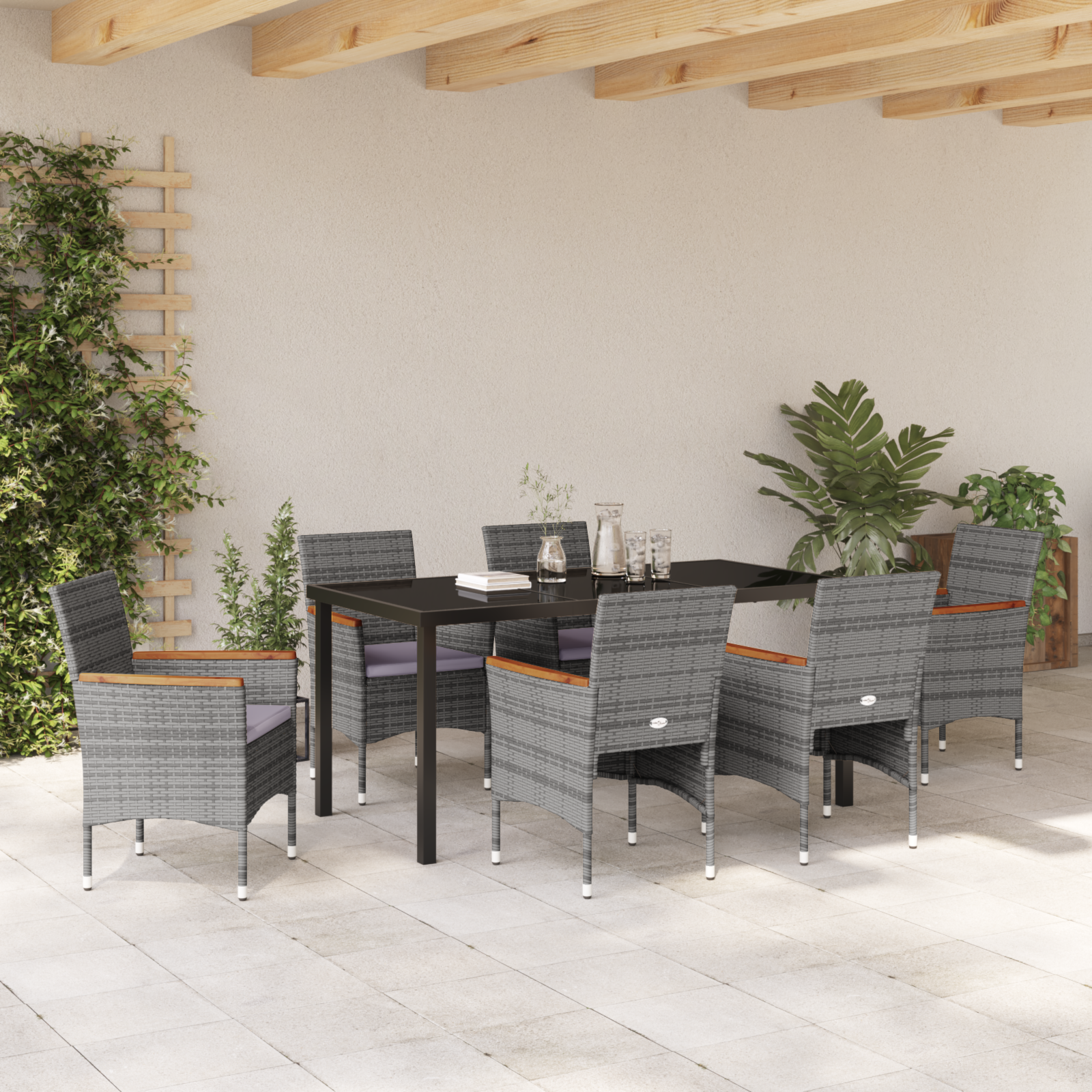 Descriere Set Dining Grădină 7 Piese Gri