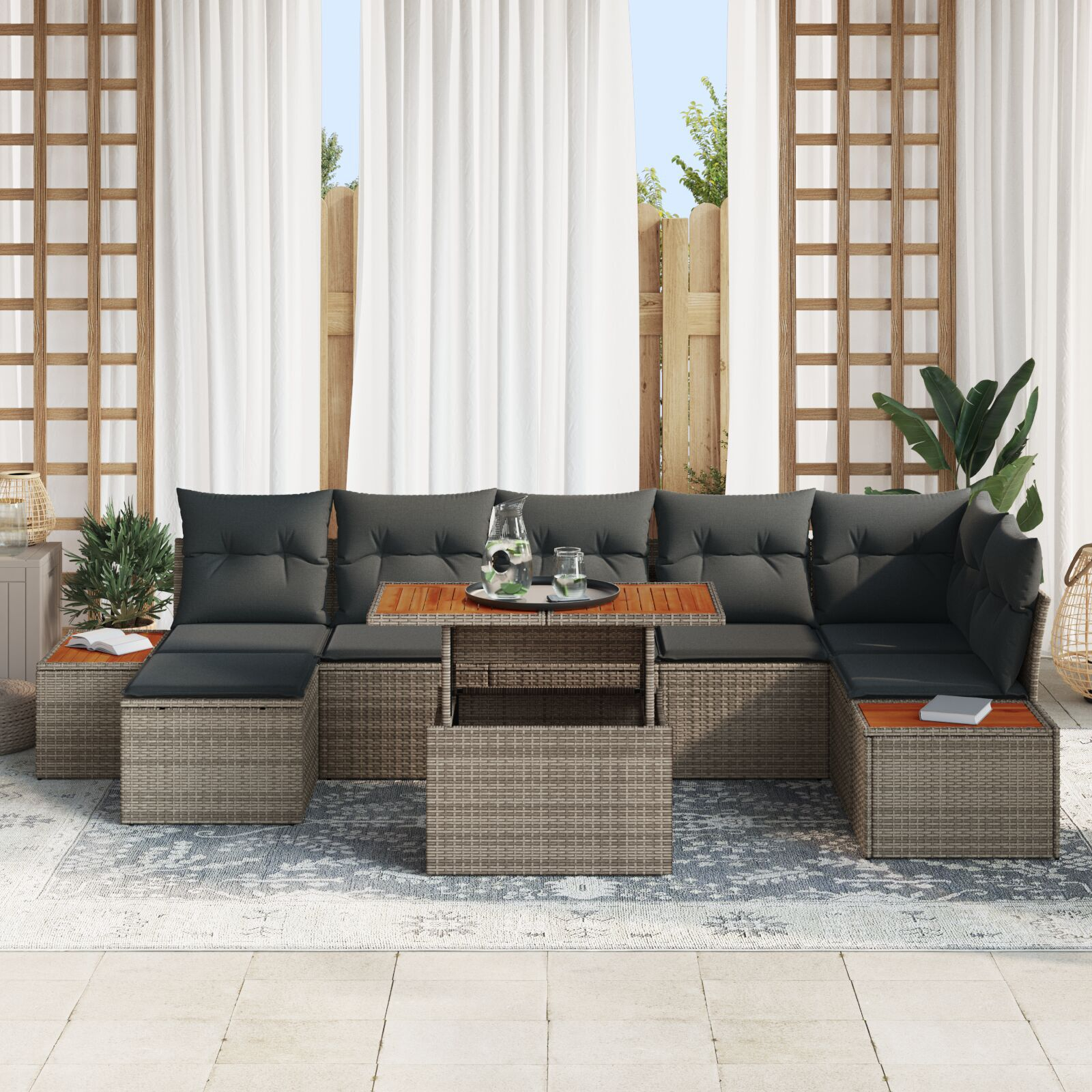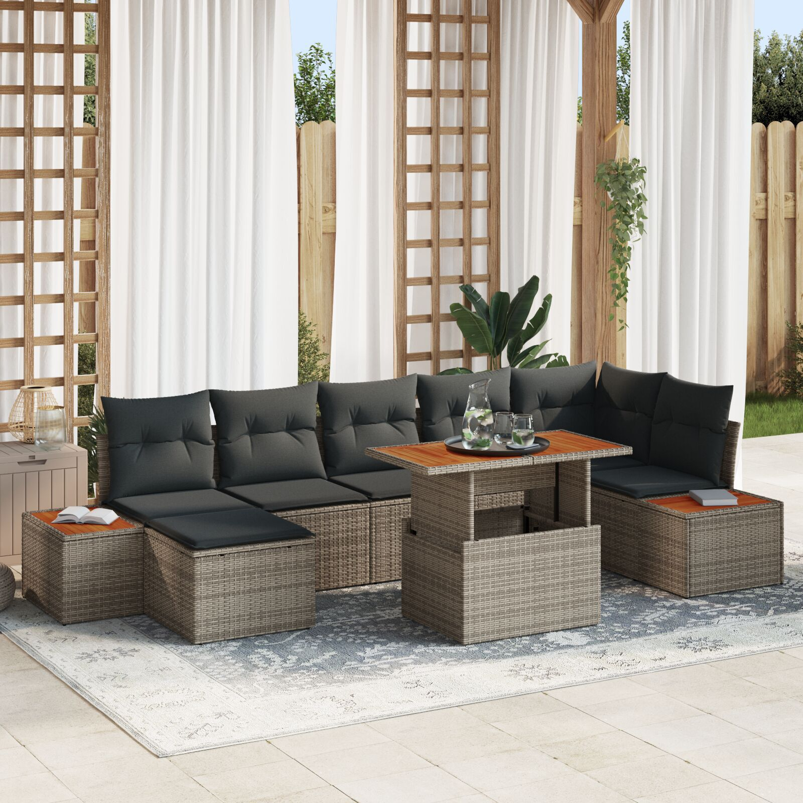 Set de dining pentru grădină , 8 piese cu perne, gri, ratan polyester, acacia GartenMobel Dekor