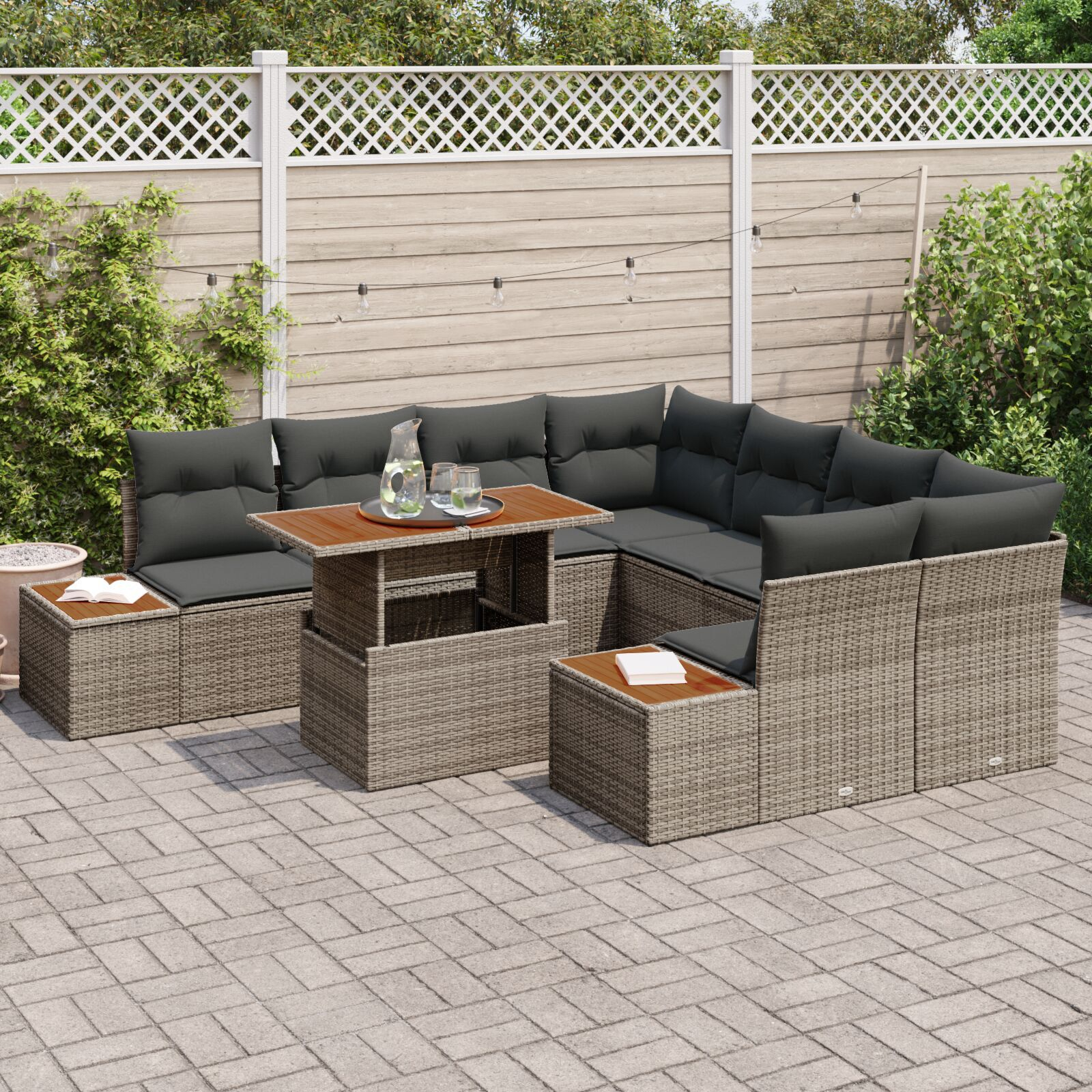 Set de dining pentru grădină 9 piese cu perne Gri din Ratan și Acacia GartenMobel Dekor