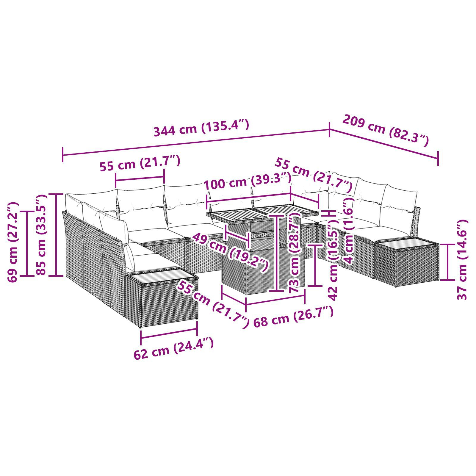 Set de dining pentru grădină cu 11 piese și perne Bej Poliratan Acacia GartenMobel Dekor