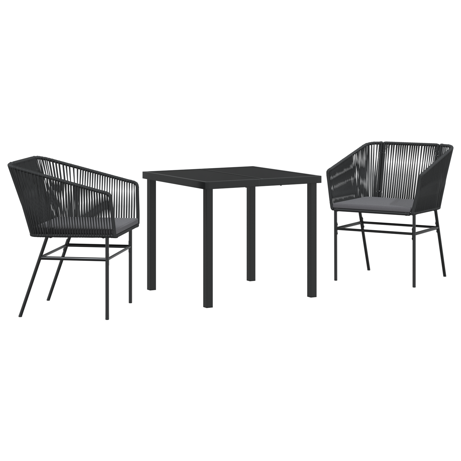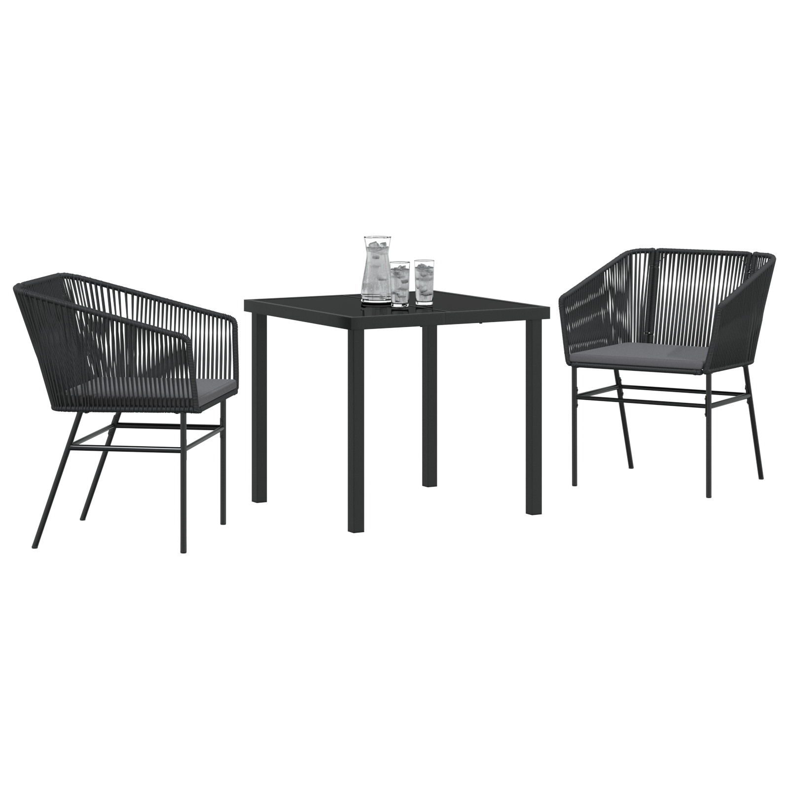 Set de dining pentru grădină cu 3 piese și perne Negru Poliratan GartenMobel Dekor