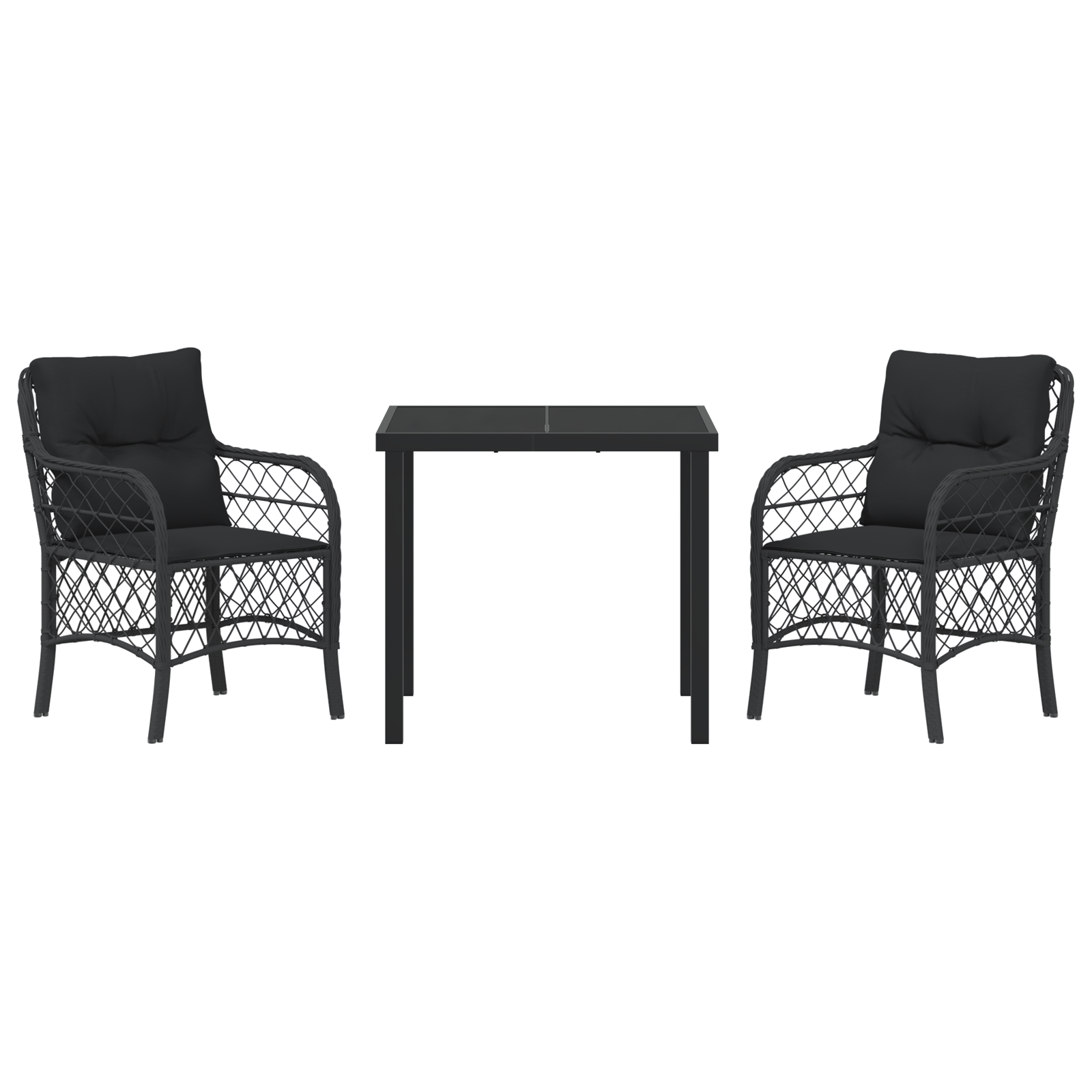 Set de Dining pentru Grădină cu 3 Piese și Perne Negru Poliratan GartenMobel Dekor