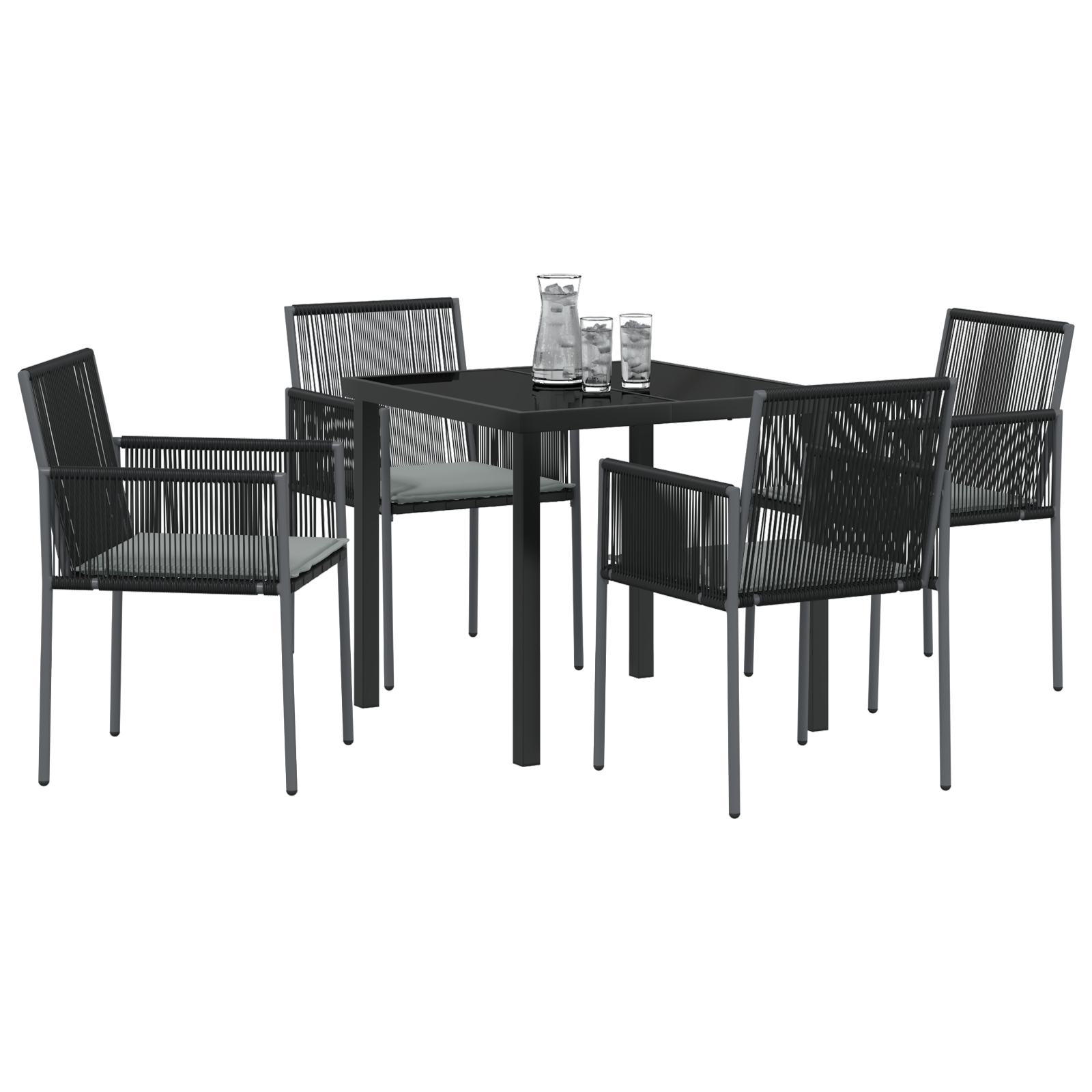 Set de Dining pentru Grădină cu 5 Piese cu Perne Negru Poliratan GartenMobel Dekor