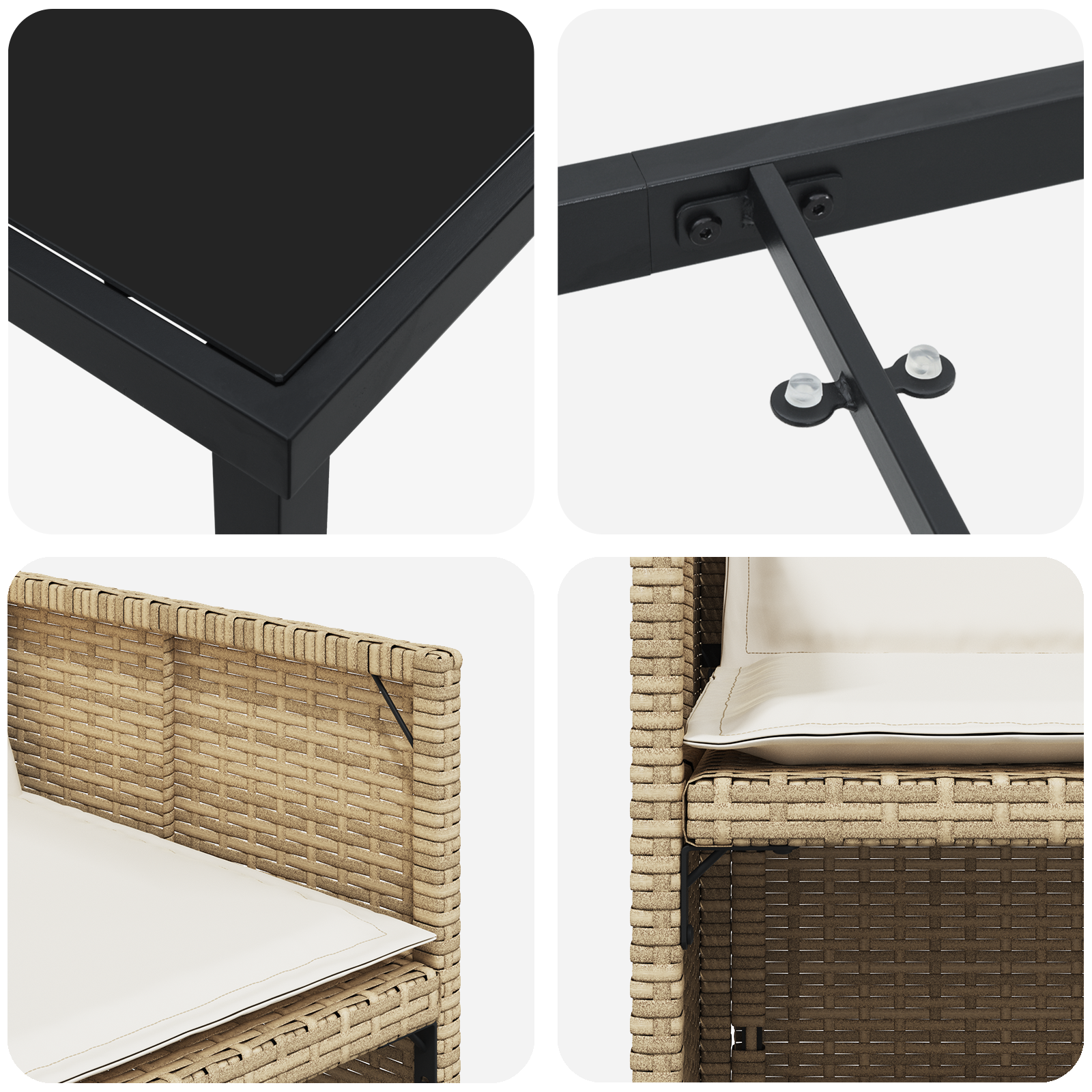 Set de Dining pentru Grădină cu 5 Piese și Perne Bej din Poliratan, Masă de Grădină Neagră 160x80x73 cm din Sticlă Temperată GartenMobel Dekor