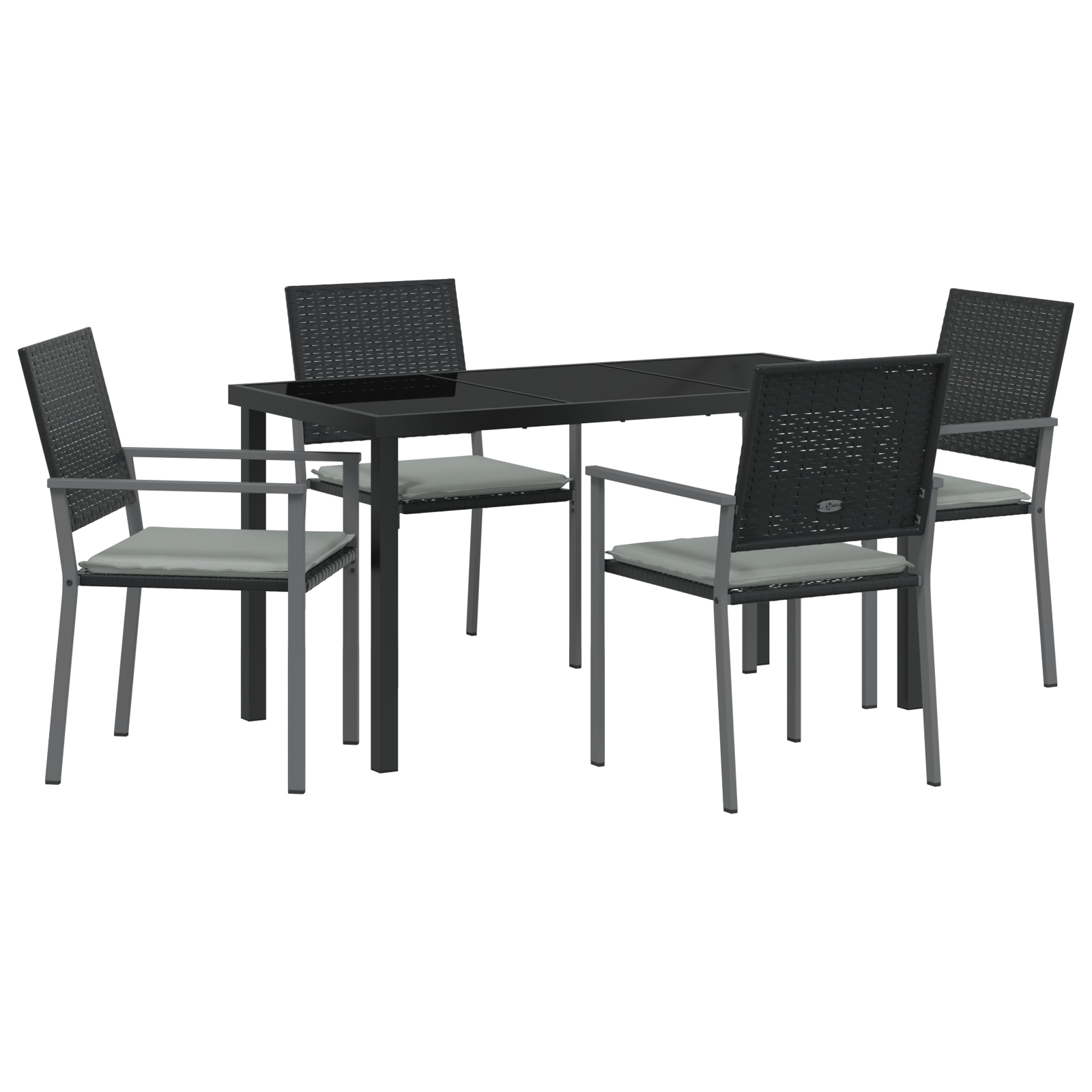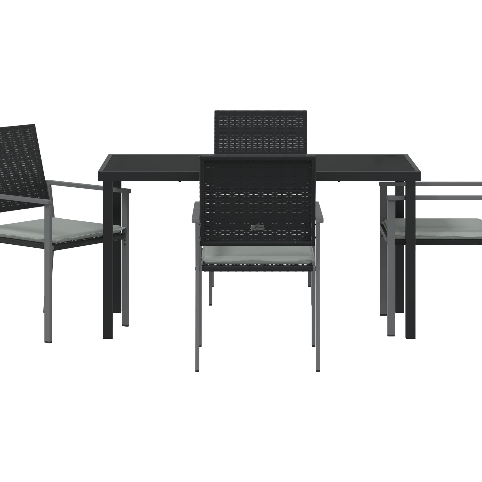 Set de dining pentru grădină cu 5 piese și perne Negru Poliratan GartenMobel Dekor