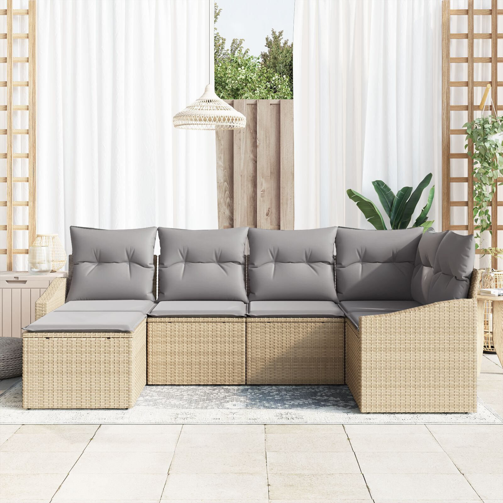 Set de dining pentru grădină cu 6 piese și perne Bej Poliratan GartenMobel Dekor
