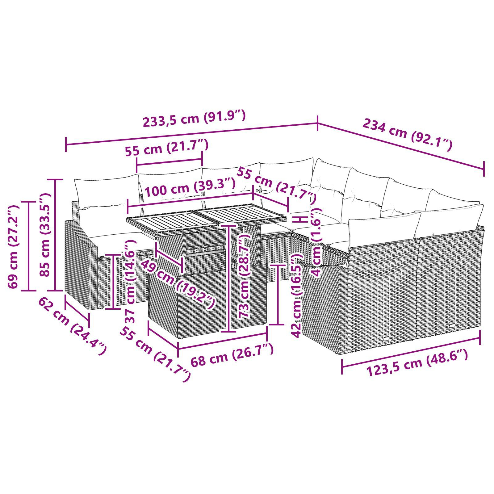 - Livrarea conține: 2 x Sofa cu brațe și stocare, 2 x loc de colț cu stocare, 4 x locuri centrale cu stocare, 1 x Masă de grădină