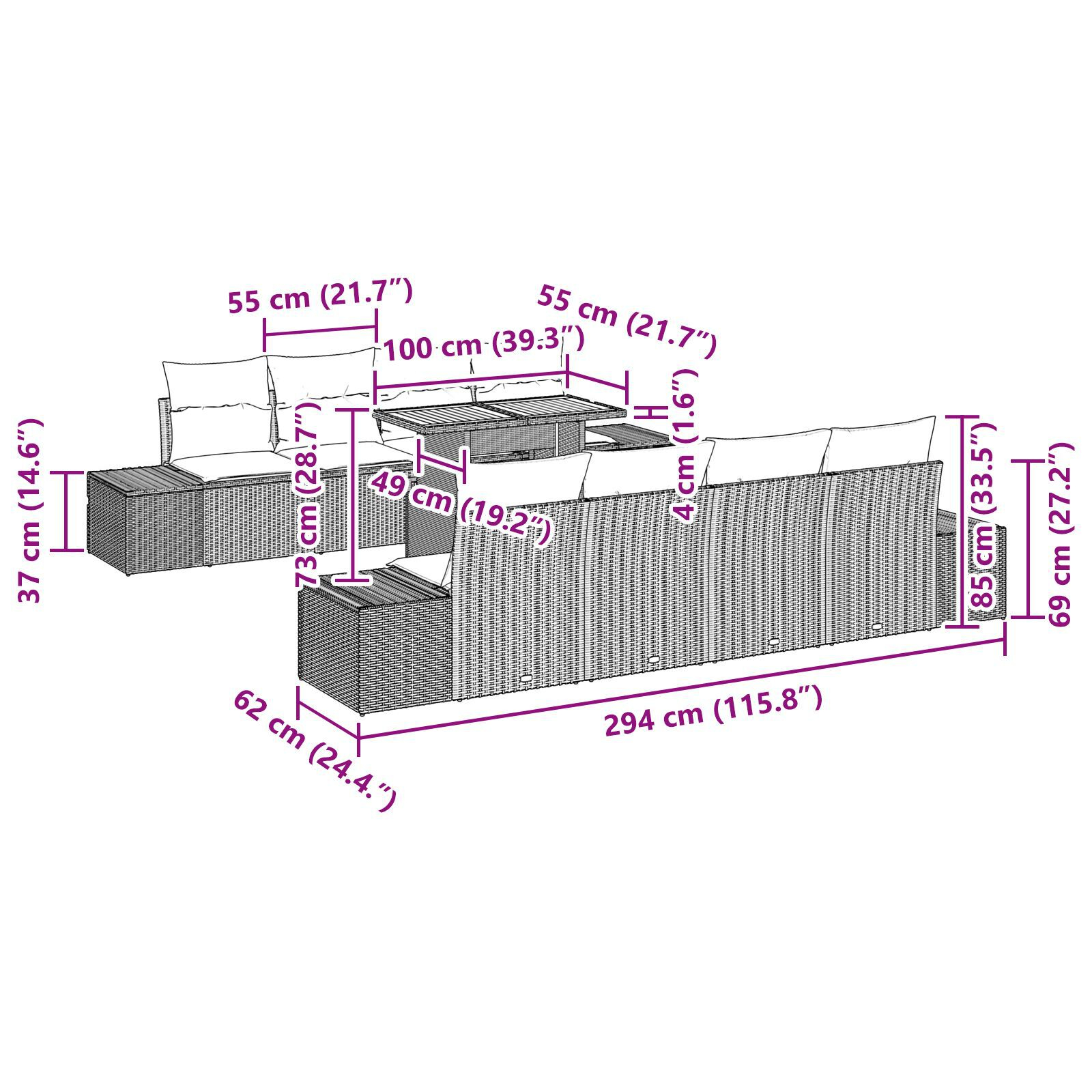 - Livrarea conține: 2 x Sofas laterale cu stocare, 4 x Scaune centrale cu stocare, 1 x Masă de grădină
