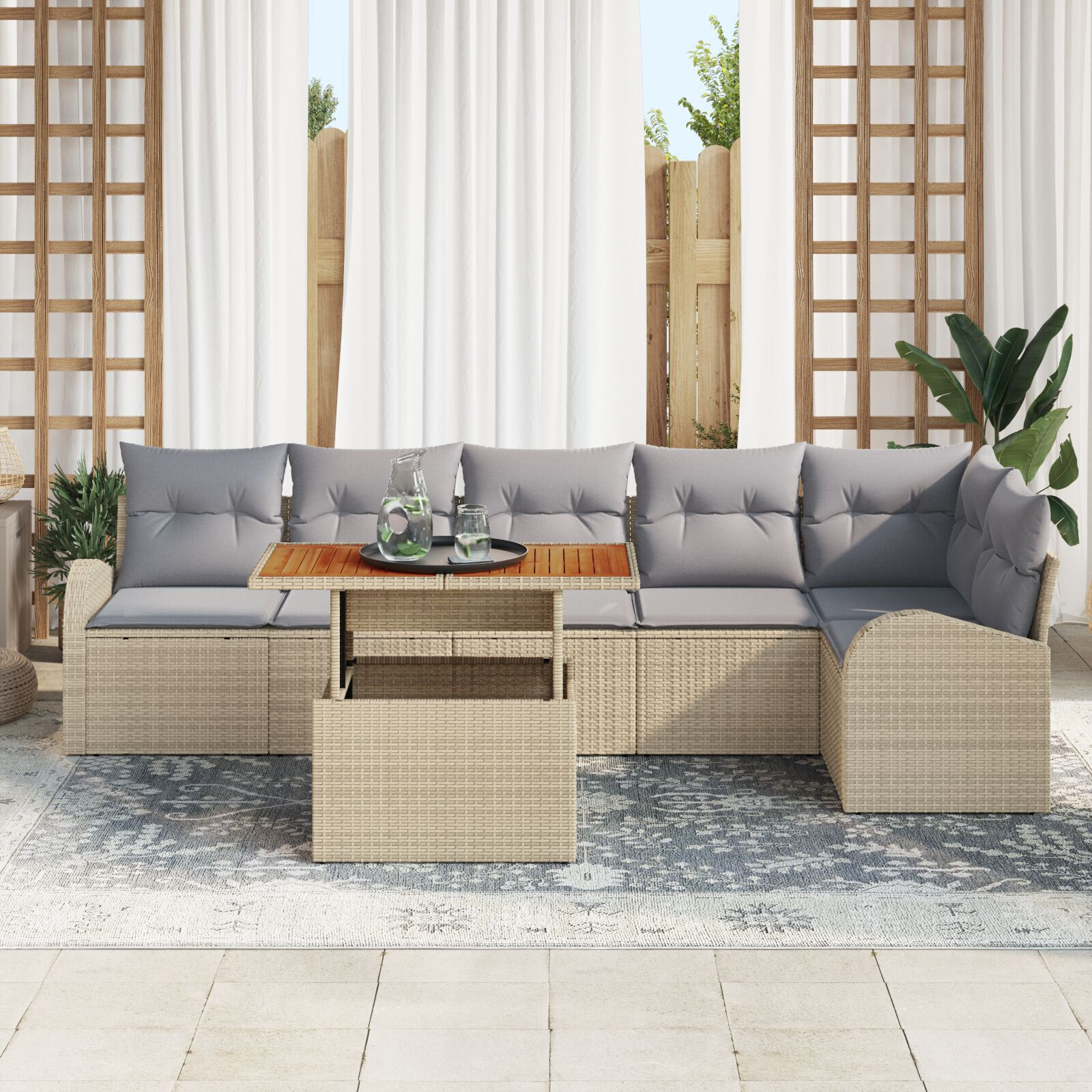 Set de Dining pentru Grădină cu Perne Bej Ratan Poli Acacia GartenMobel Dekor