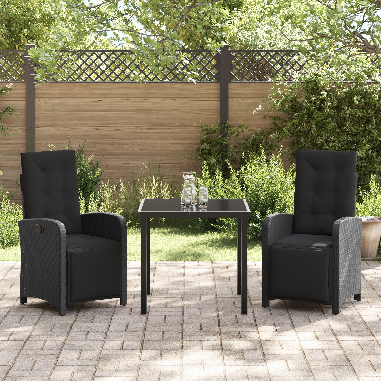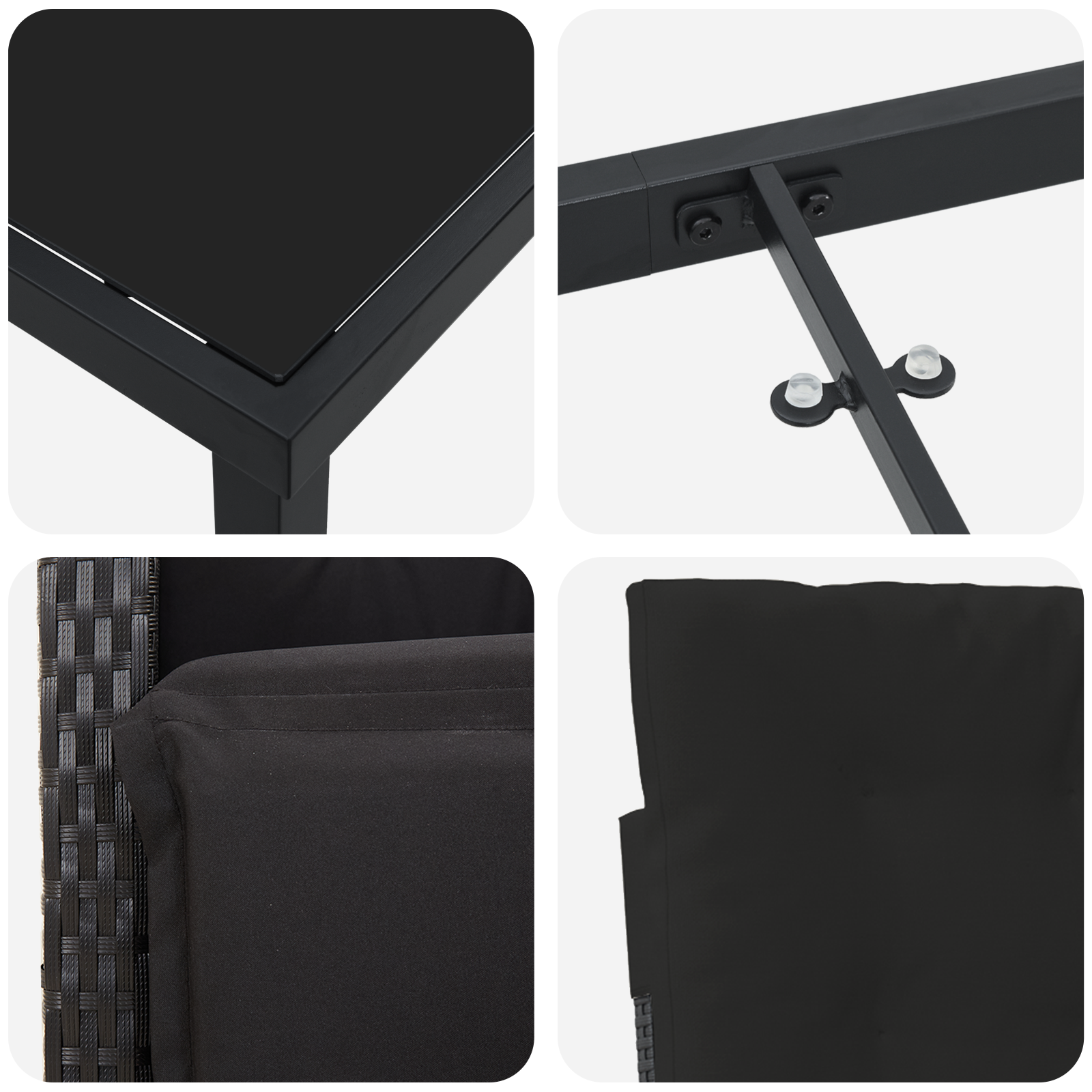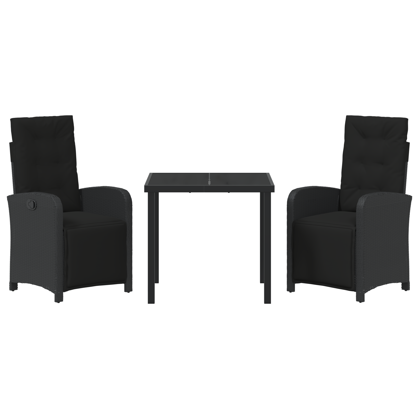 Set de dining pentru grădină cu perne poli-ratan negru, Masă de grădină neagră 80x80x73 cm sticlă securizată GartenMobel Dekor