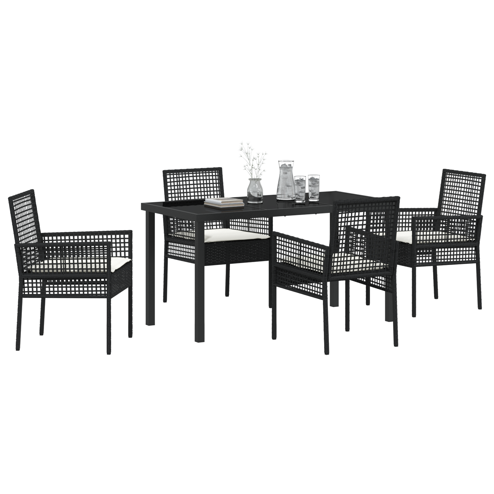 Set de Dining pentru Grădină cu Perne Poliratan Negru de 5 Piese GartenMobel Dekor