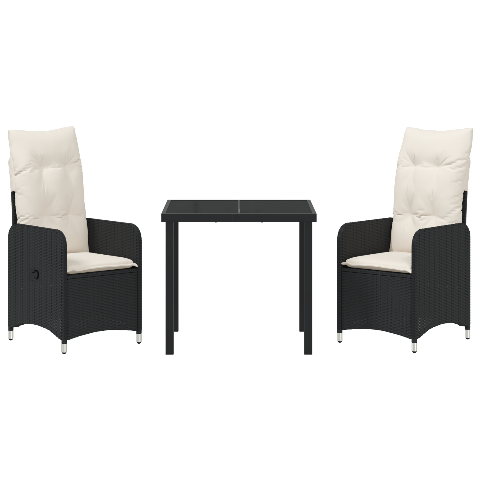 Set de Dining pentru Grădină de 3 Piese cu Perne Negre din Poliratan GartenMobel Dekor