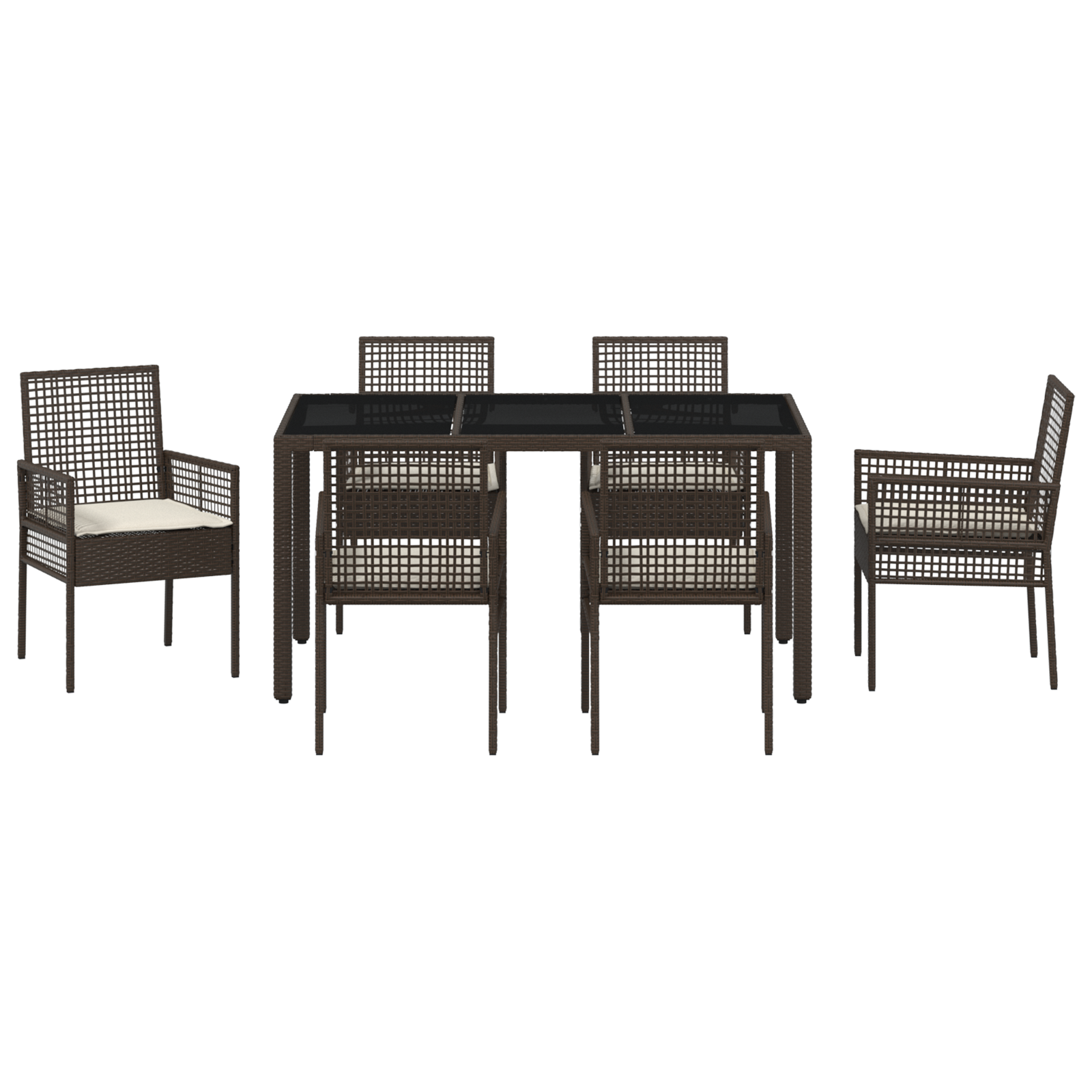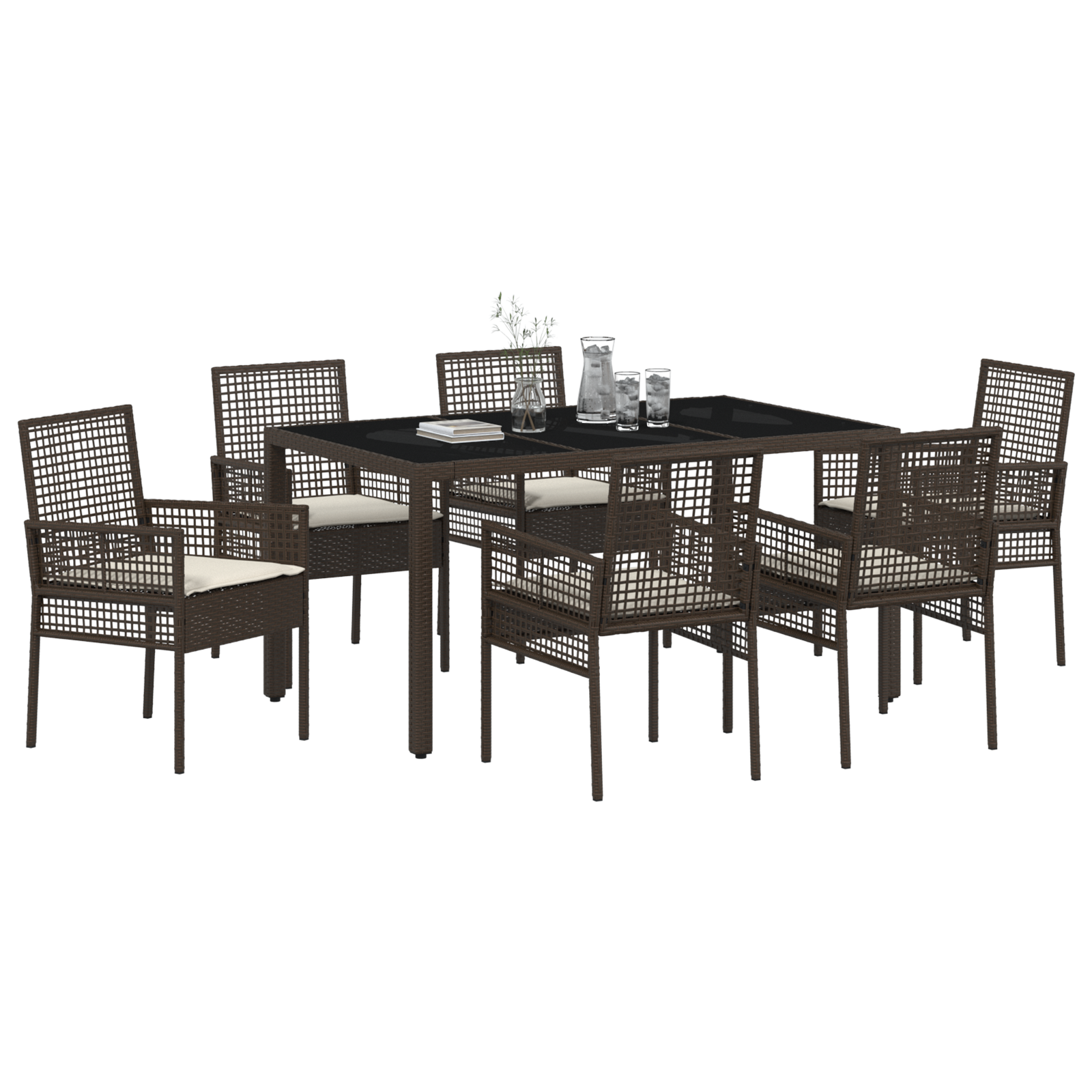 Set de dining pentru grădină de 7 piese cu perne din poliratan maro GartenMobel Dekor