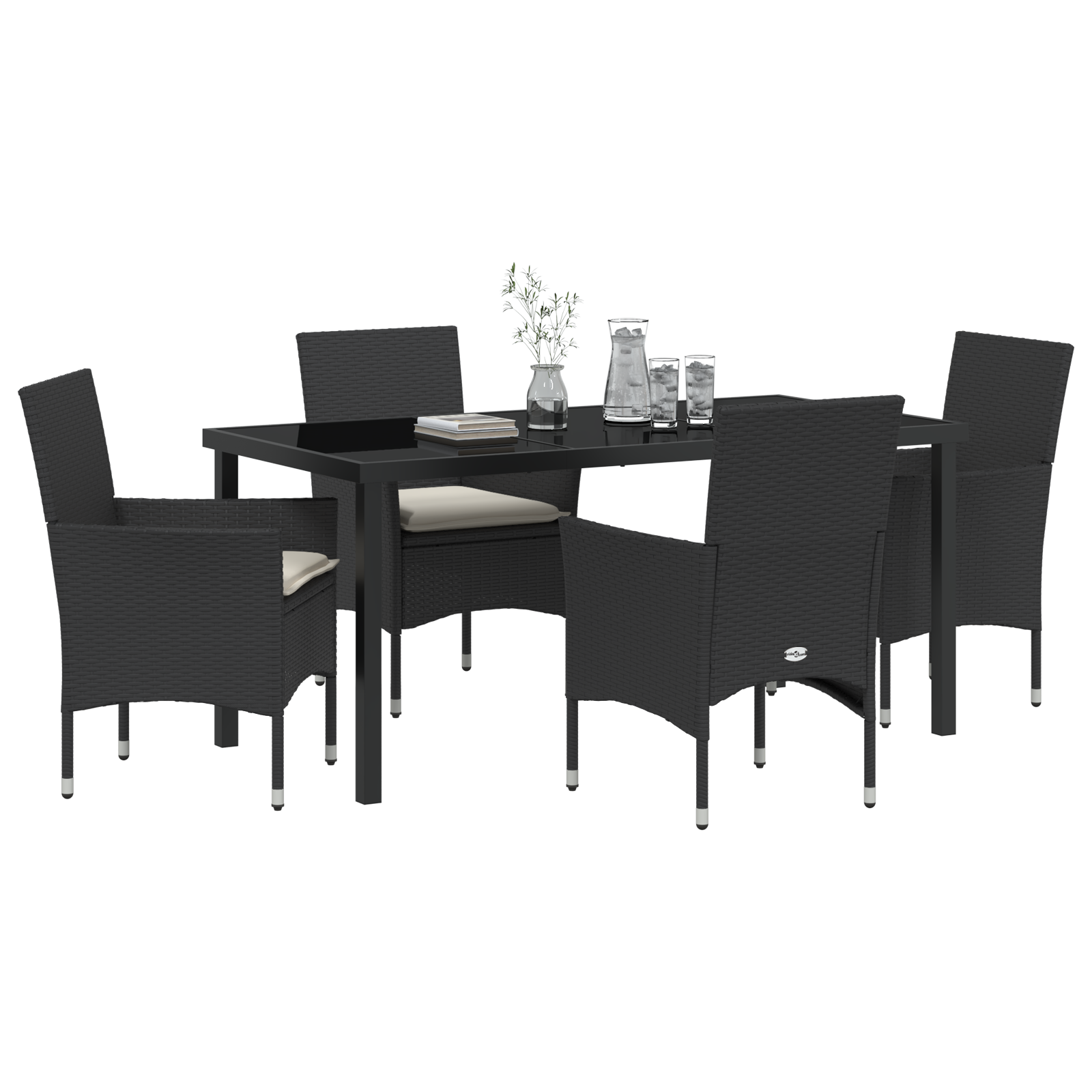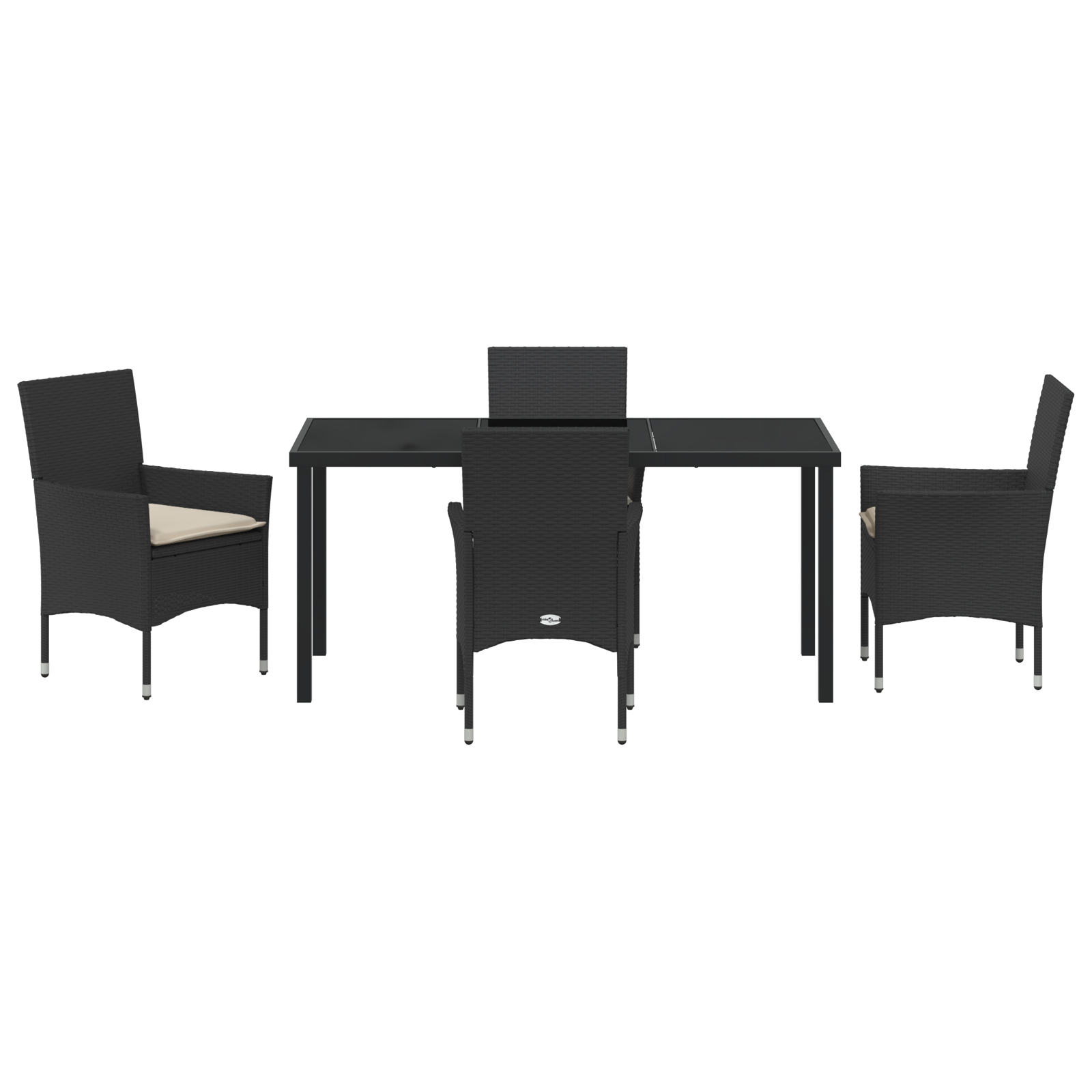 Set de dining pentru grădină din 5 piese cu perne din ratan negru, Masă de grădină neagră 160x80x73 cm din sticlă tratată GartenMobel Dekor