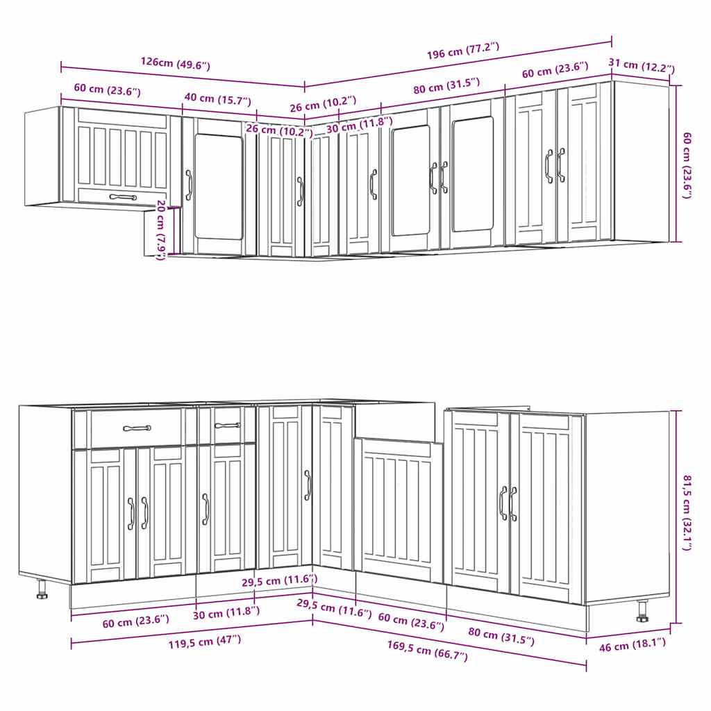Set de dulapuri de bucătărie 11 piese „Lucca” Lemn vechi lemn GartenMobel Dekor