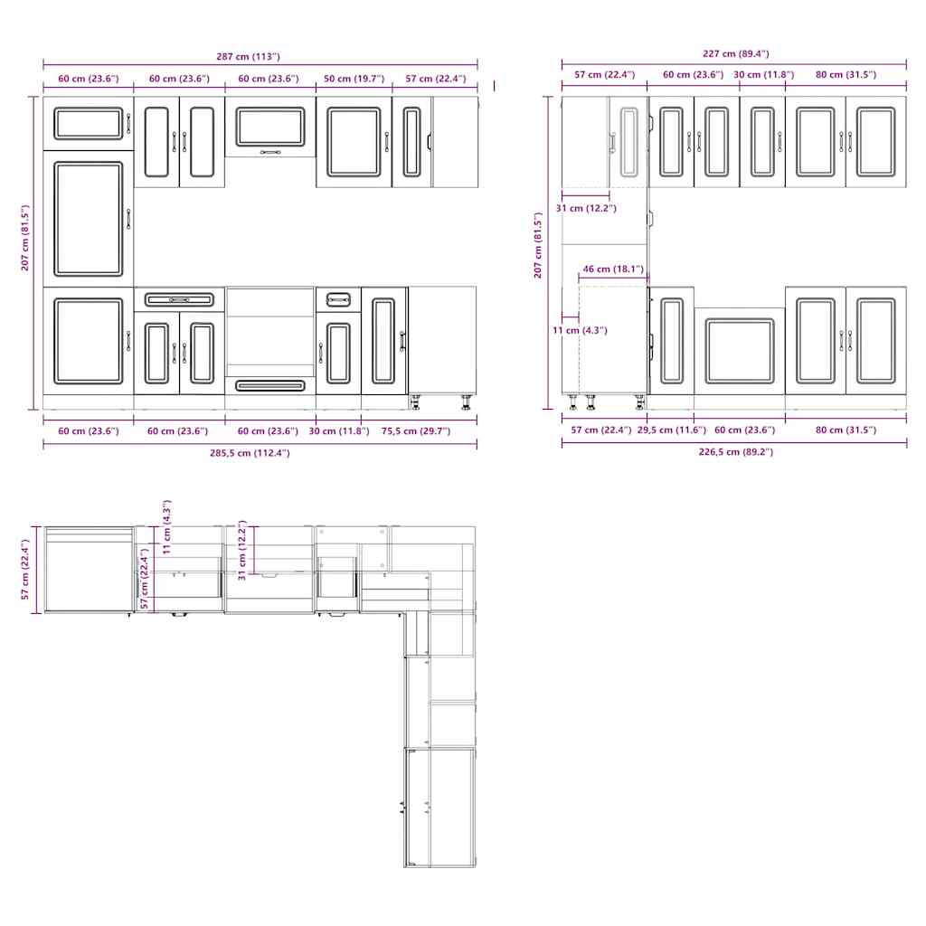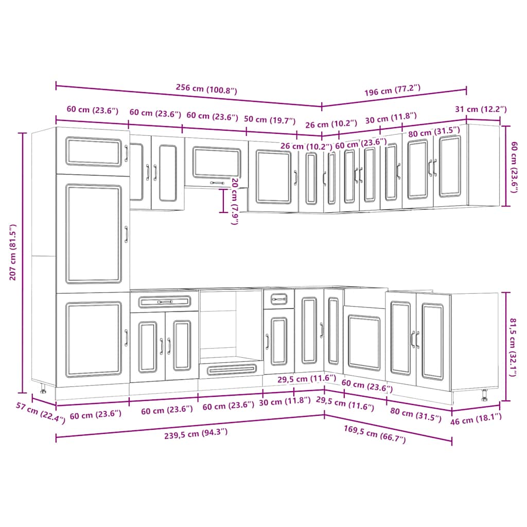 Set de dulapuri de bucătărie 14 piese „Kalmar” Lemn vechi lemn GartenMobel Dekor