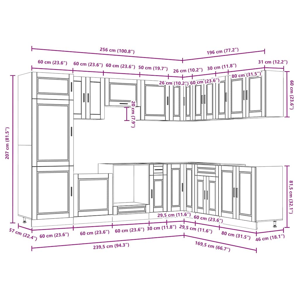 Set de dulapuri de bucătărie 14 piese „Porto” Lemn vechi lemn GartenMobel Dekor