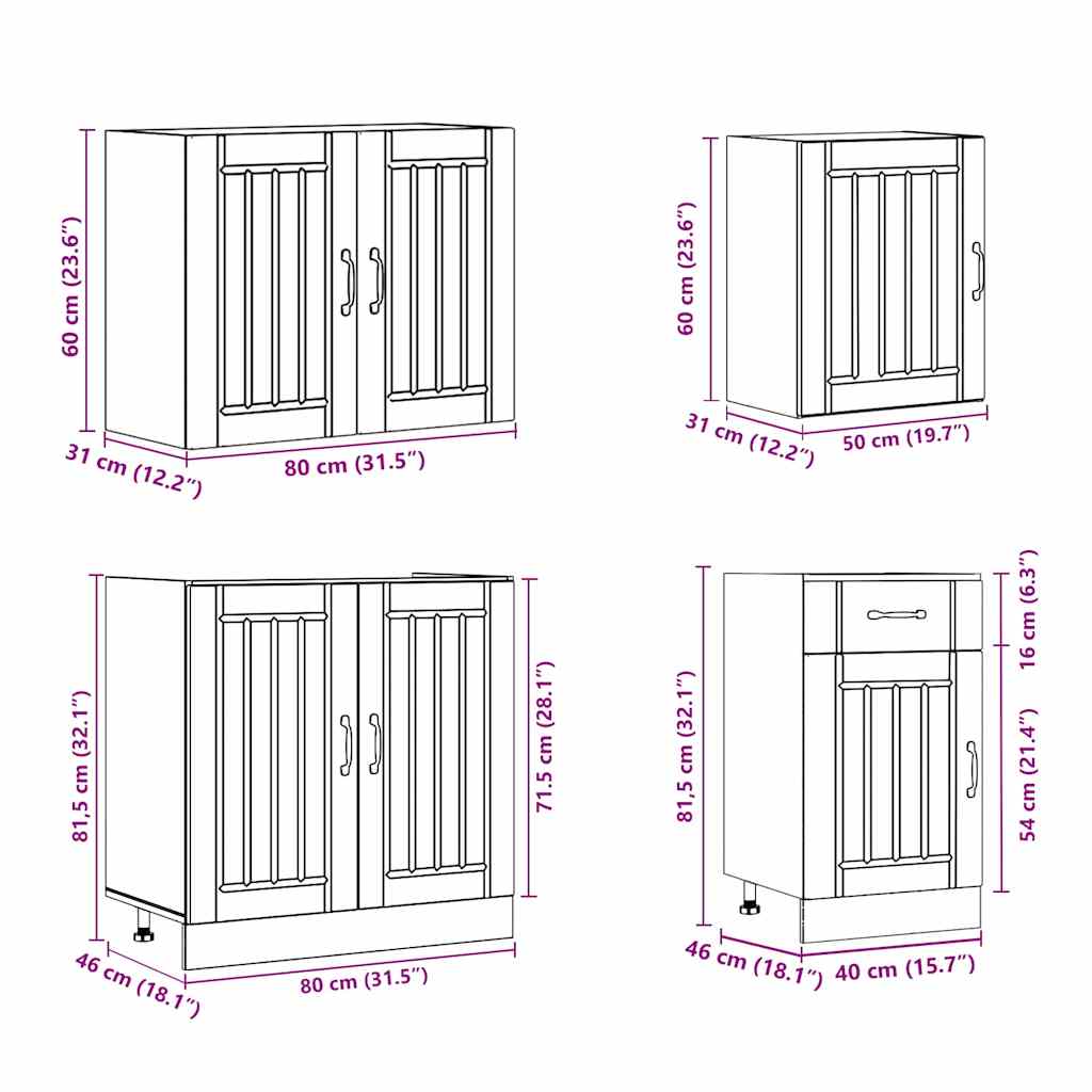 Acest set de dulapuri de bucătărie, format din 7 piese, cu designul său elegant, optimizează spațiul din bucătărie și oferă un loc de depozitare amplu pentru lucrurile necesare!