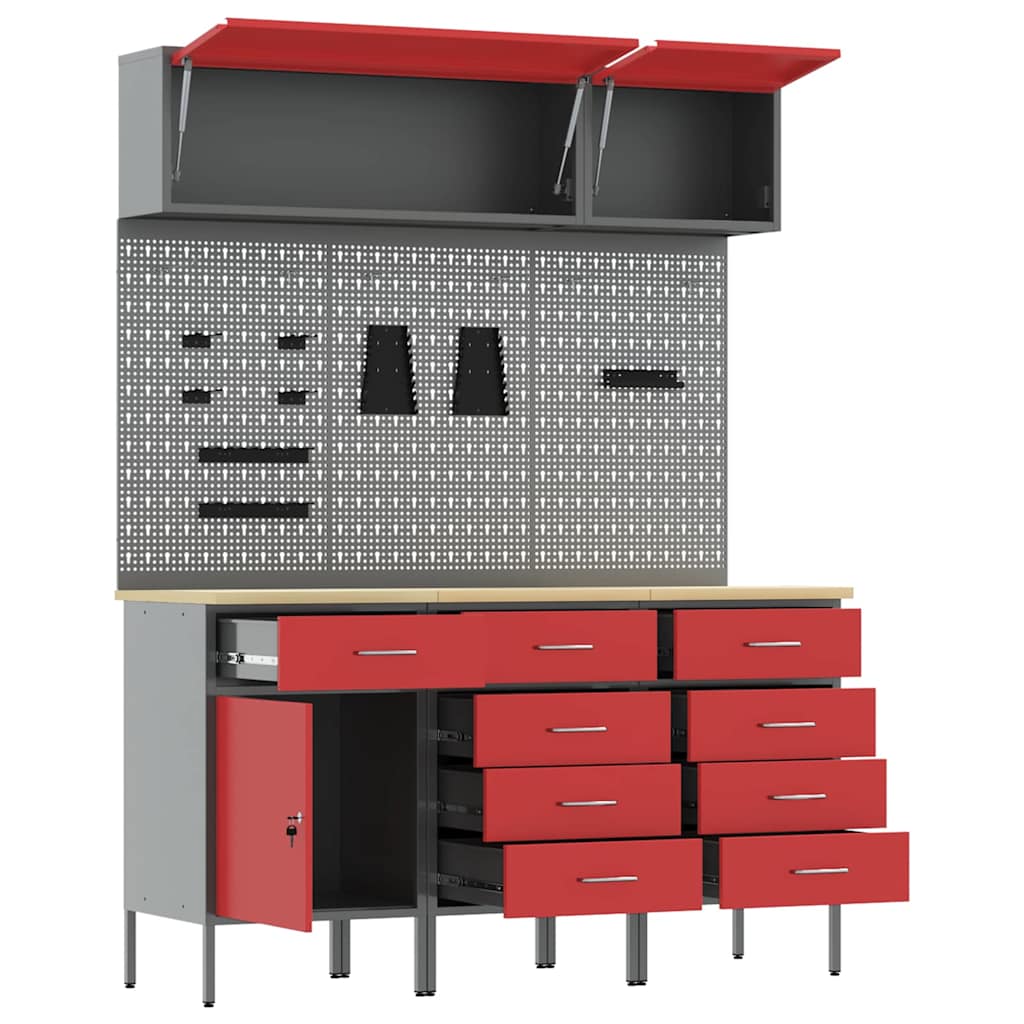 Set de dulapuri de lucru cu sertar cu depozitare 8 pcs Roșu GartenMobel Dekor